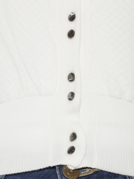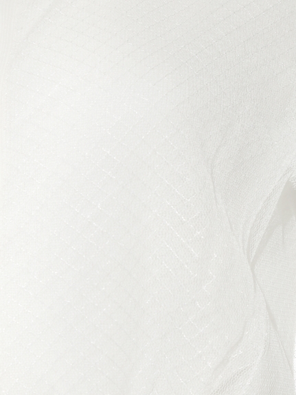 さらりとしたニットに、繊細なチュールを重ねたフェミニントップスが登場しました。格子柄をデザインしたチュールと、緩やかなふんわりフレア袖が、シックで品の良い印象。ワイドボトムスやスカートともバランス良く着こなせるコンパクト丈で、デイリーからお出かけシーンにも活躍間違いなしの1枚です。