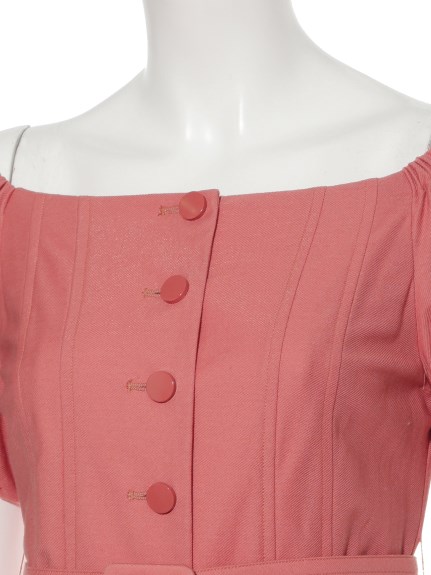 前ボタンオフショルワンピース