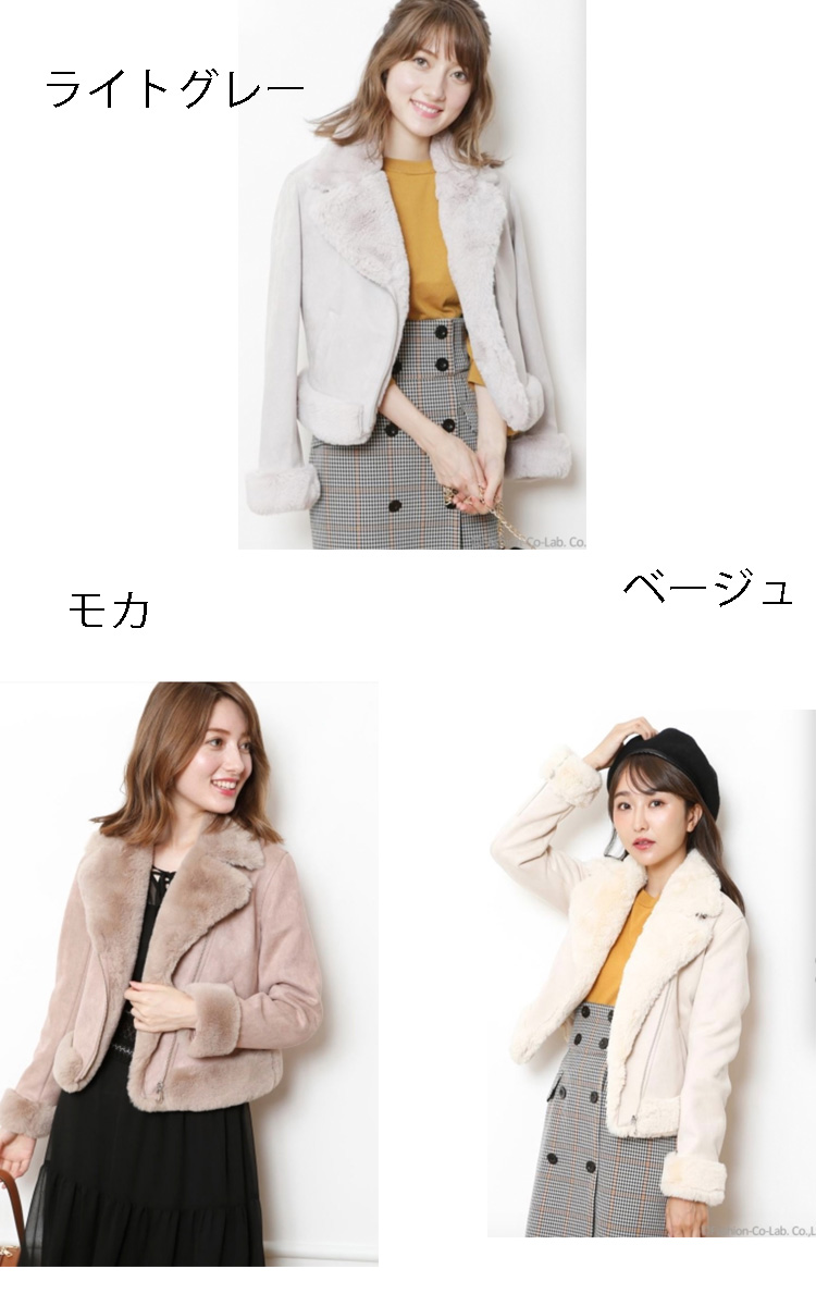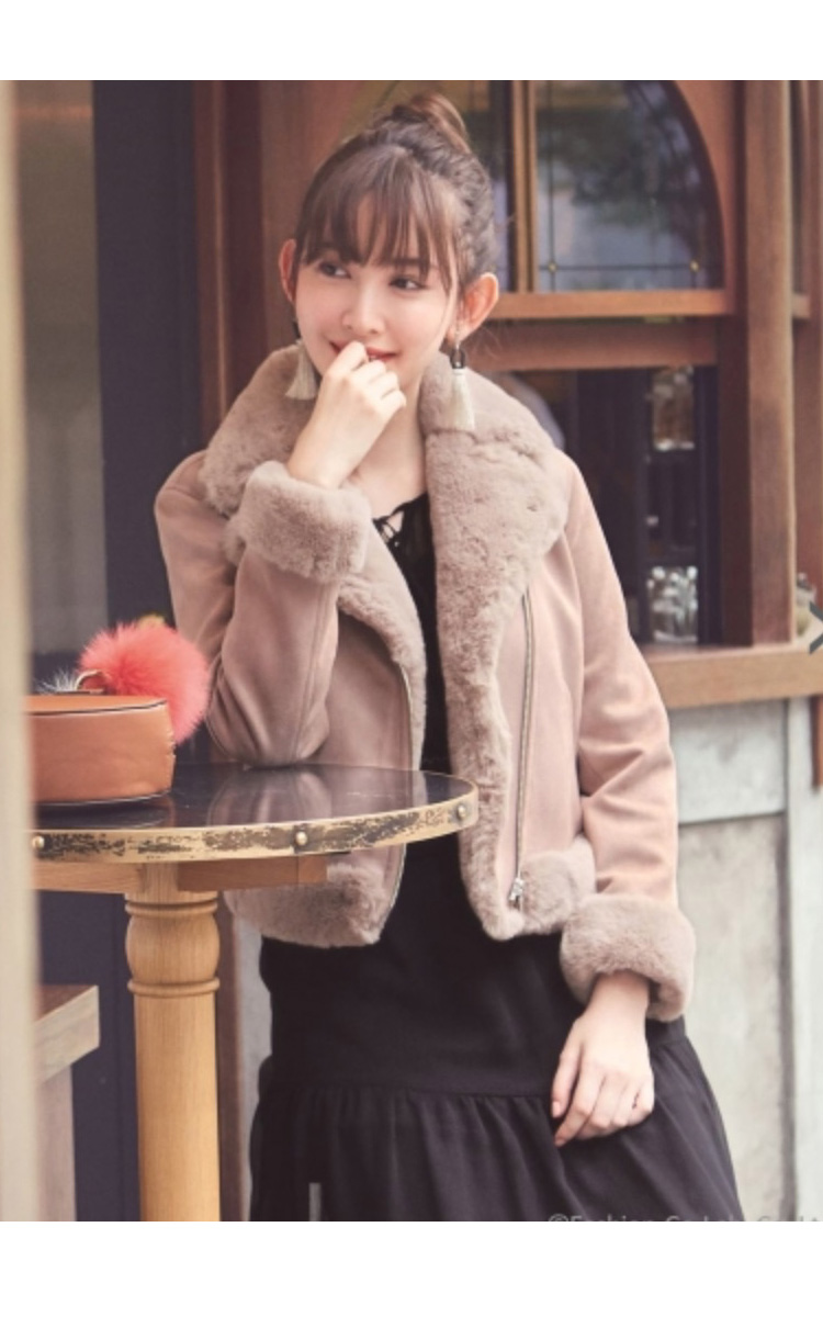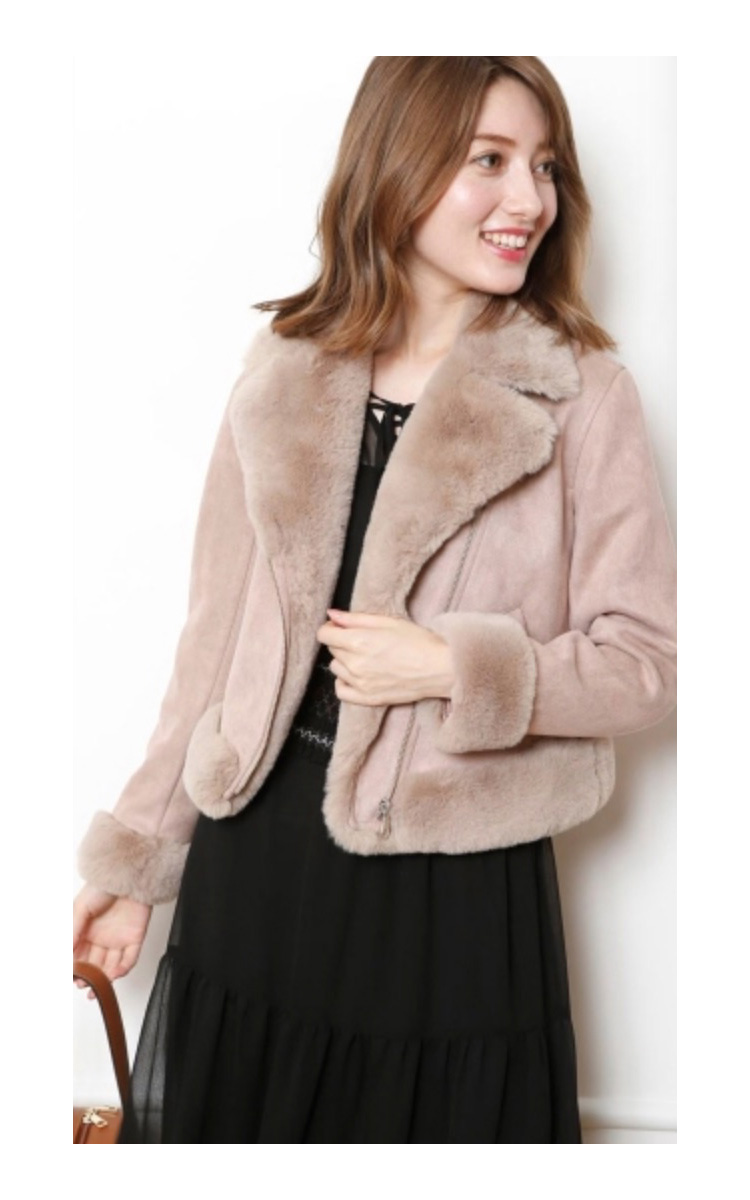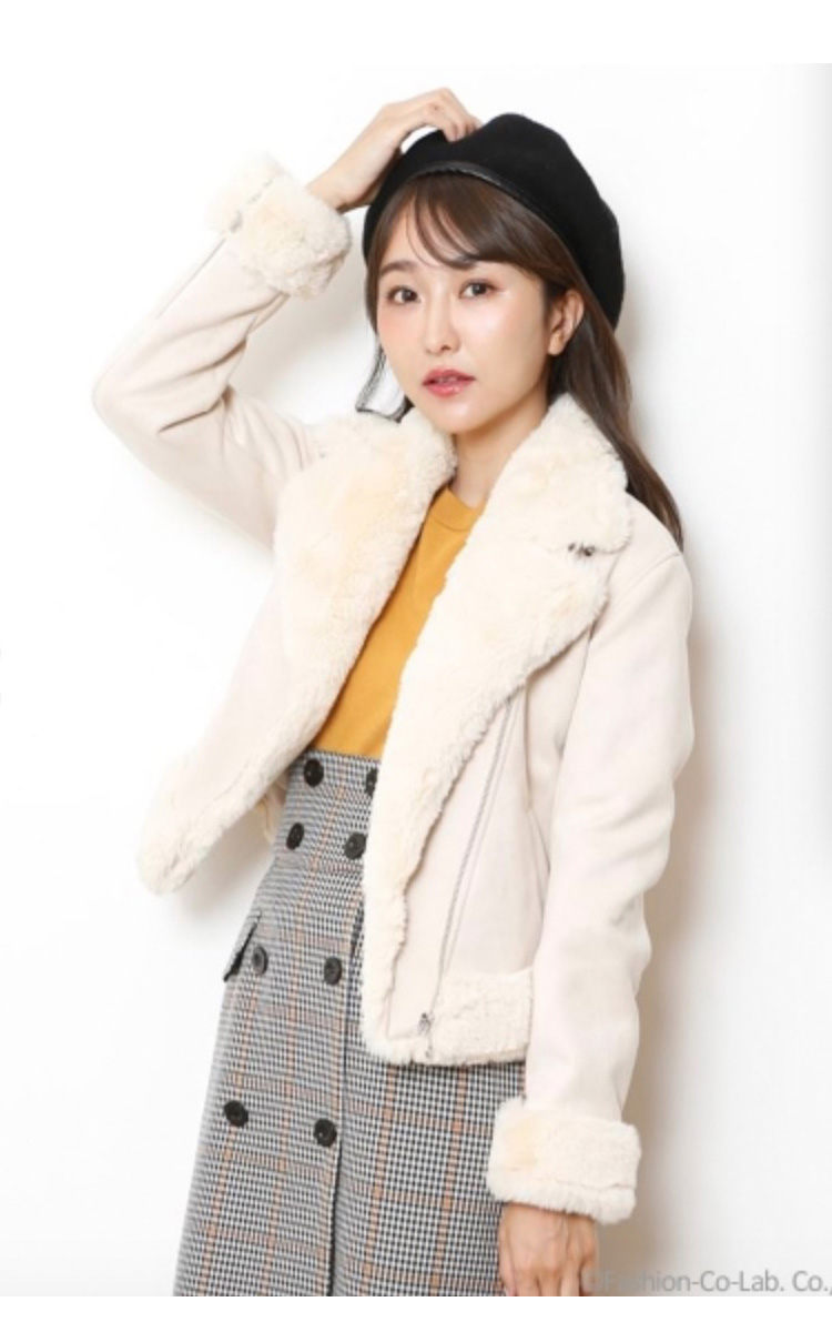 モコモコとしたフェイクファー使いに、シーズンムードが高まるライダースジャケット。女性らしいコンパクトサイズだから、ボリュームがありながらも着こなしはスマートに。スタイリングしやすいワントーンカラーも◎です。