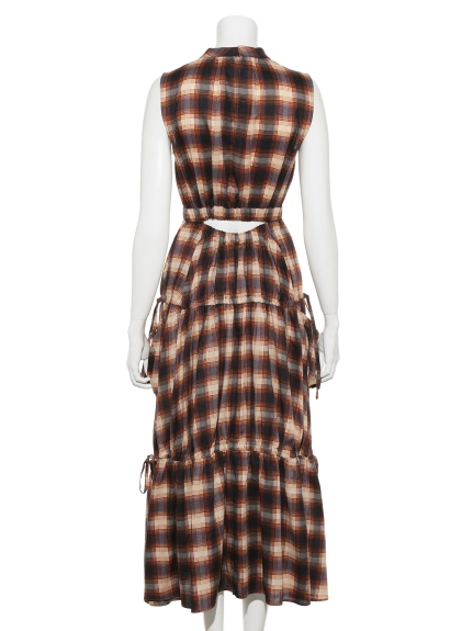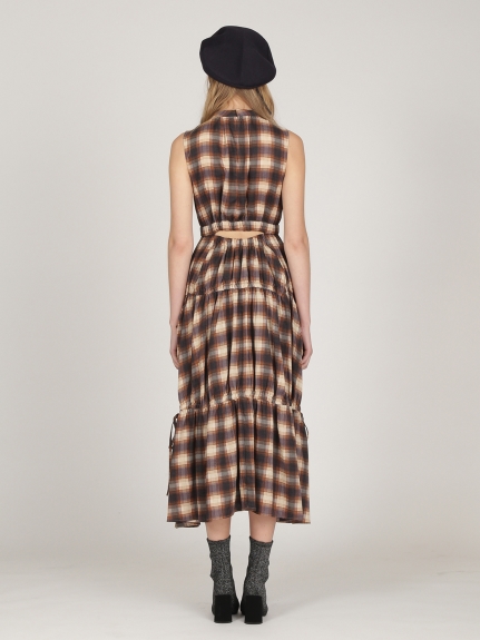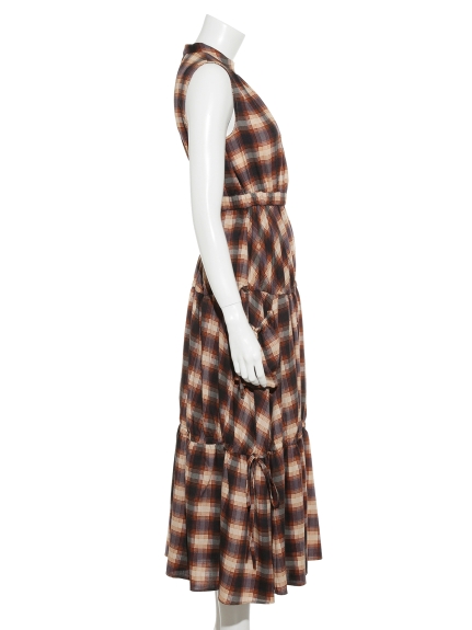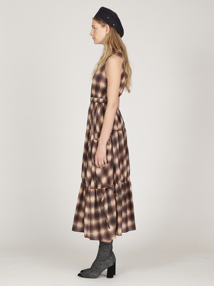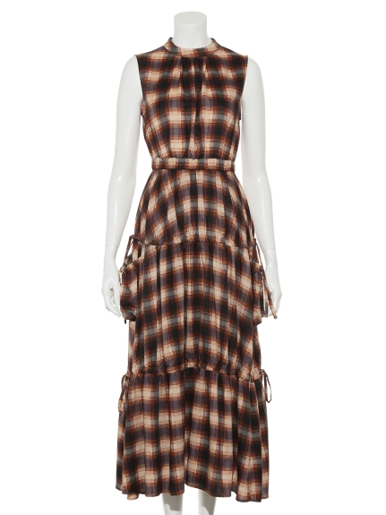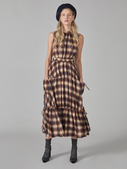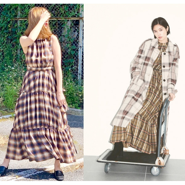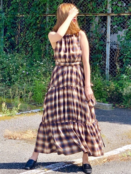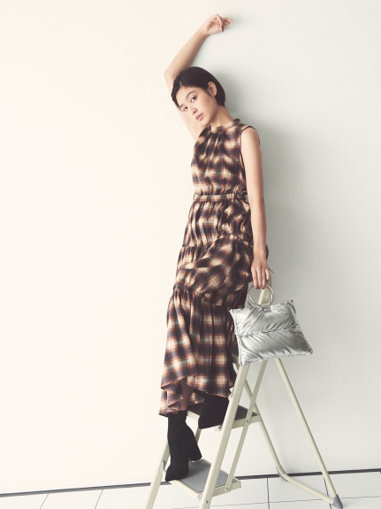 大胆に重ねたティアードが女性らしいマキシ丈ワンピースは、襟元をノーブルな印象のスタンドカラーに設定して、モードさを演出。さりげない肌見せが叶う腰の部分開きが、ボリューミーなシルエットに抜け感をプラスします。一枚でさらっと着こなすのはもちろん、カーディガンなどを合わせた秋冬らしいスタイリングもおすすめです。