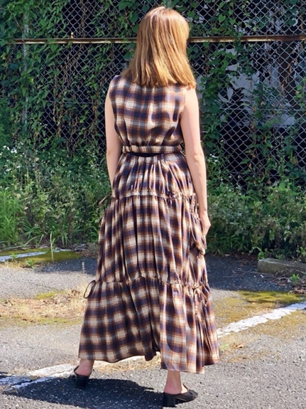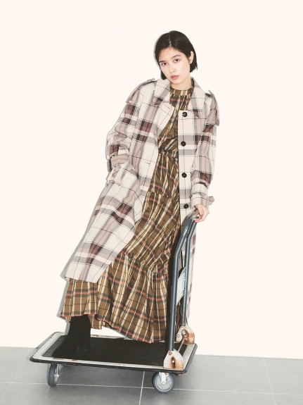 暖かみのあるウール混素材を使用したワンピースは、レディライクなバーガンディに加えて、チェックプリントのパープルとカーキをご用意しました。