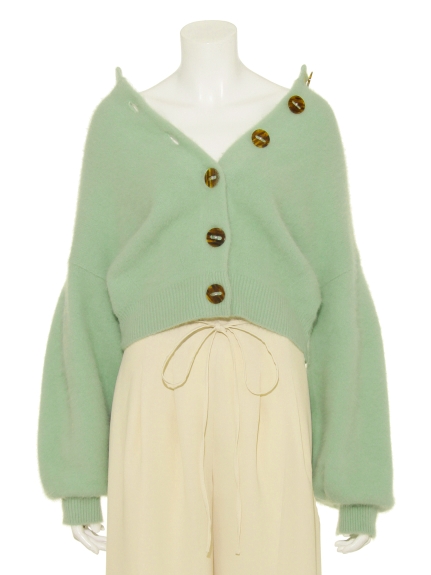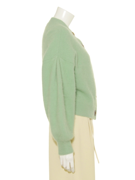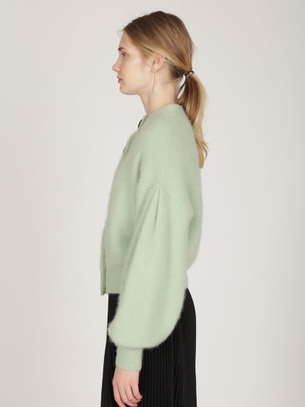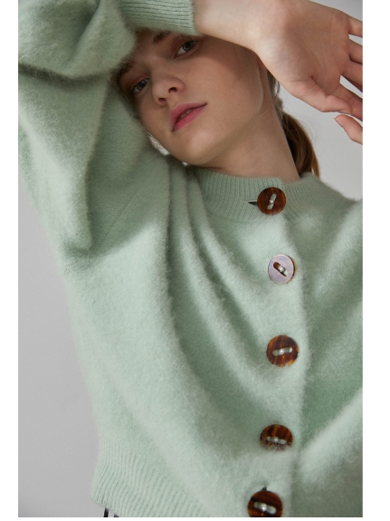 上質なラクーンとウールのミックス糸で丁寧に編み上げた肌触りの良いカーディガンを、色鮮やかなグリーン、ラベンダーと、スタイリングしやすいブラックでご用意しました。