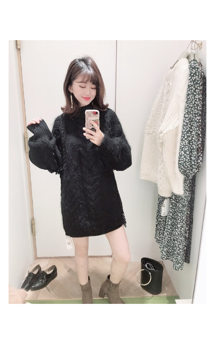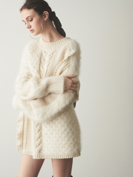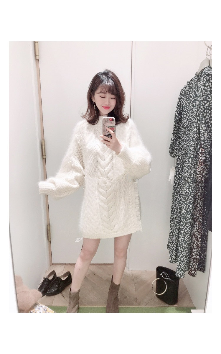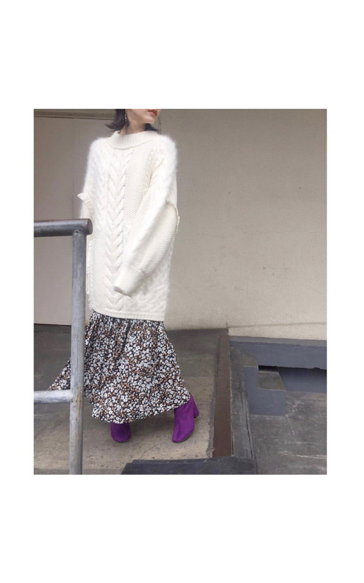 今年らしいオーバーサイズのニットワンピースがお目見え。