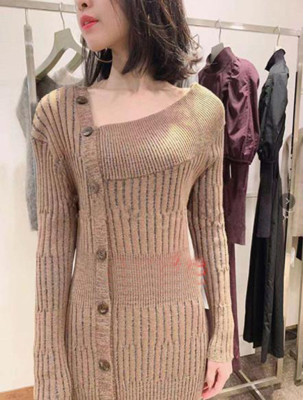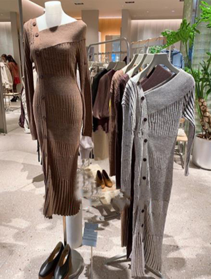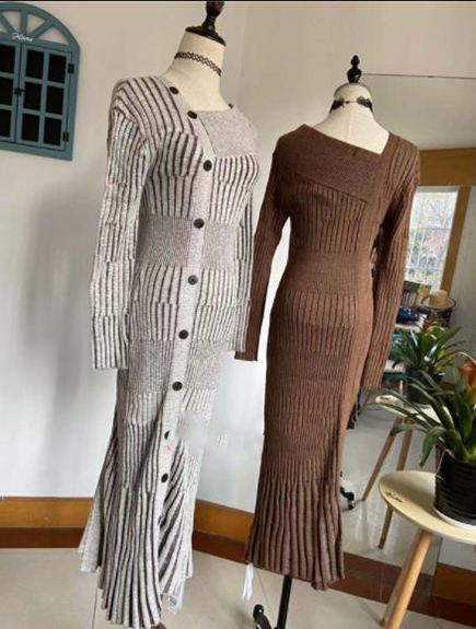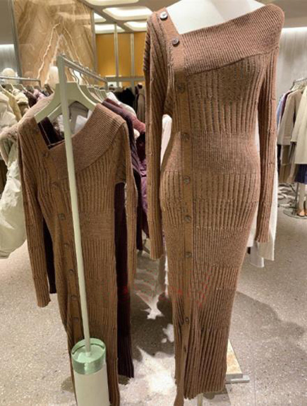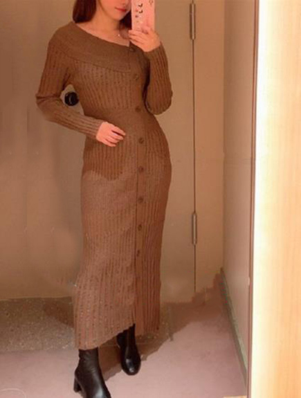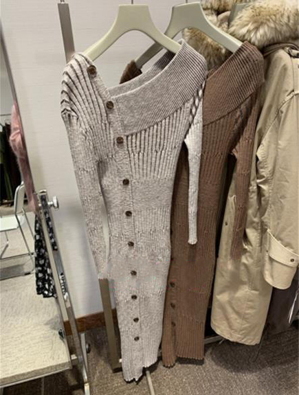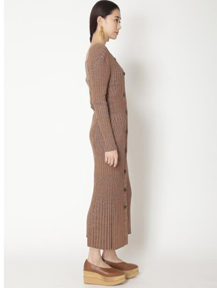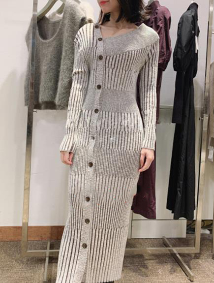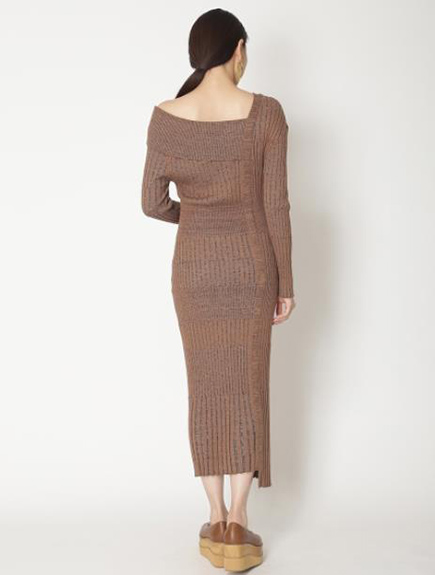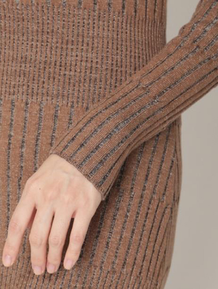 リブ幅を切り替えてアクセントをプラスしたワンピースはしなやかにフィットし、女性らしいシルエットを描いてくれます。