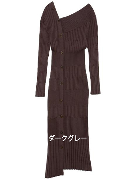 アシンメトリーシルエットが特徴的なワンピースは、左肩を落としてワンショルダーとしても楽しめるデザイン性の高い一枚。