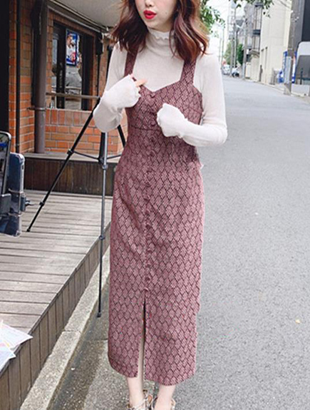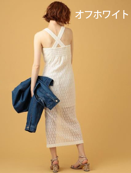 フラワーレースがさりげない華やかさをプラスするタイトワンピース。ショルダーはバックでクロスさせることが可能な2WAY仕様となっています。カーディガンやパーカなどの羽織りものと相性が良く、スニーカーを組み合わせることでカジュアルシーンにも合わせやすいです。