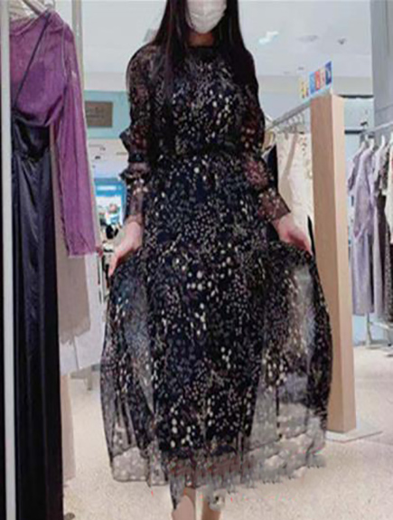 花柄に抵抗がある方でもトライしやすい、シックで華やかなワンピースが完成しました。