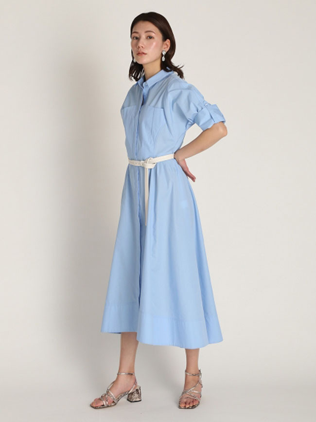 ベルト付きシャツワンピース