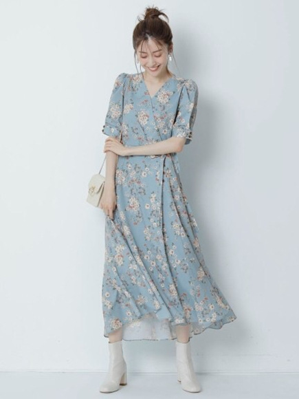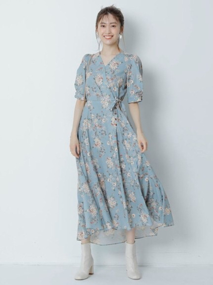 カシュクールフラワーワンピース