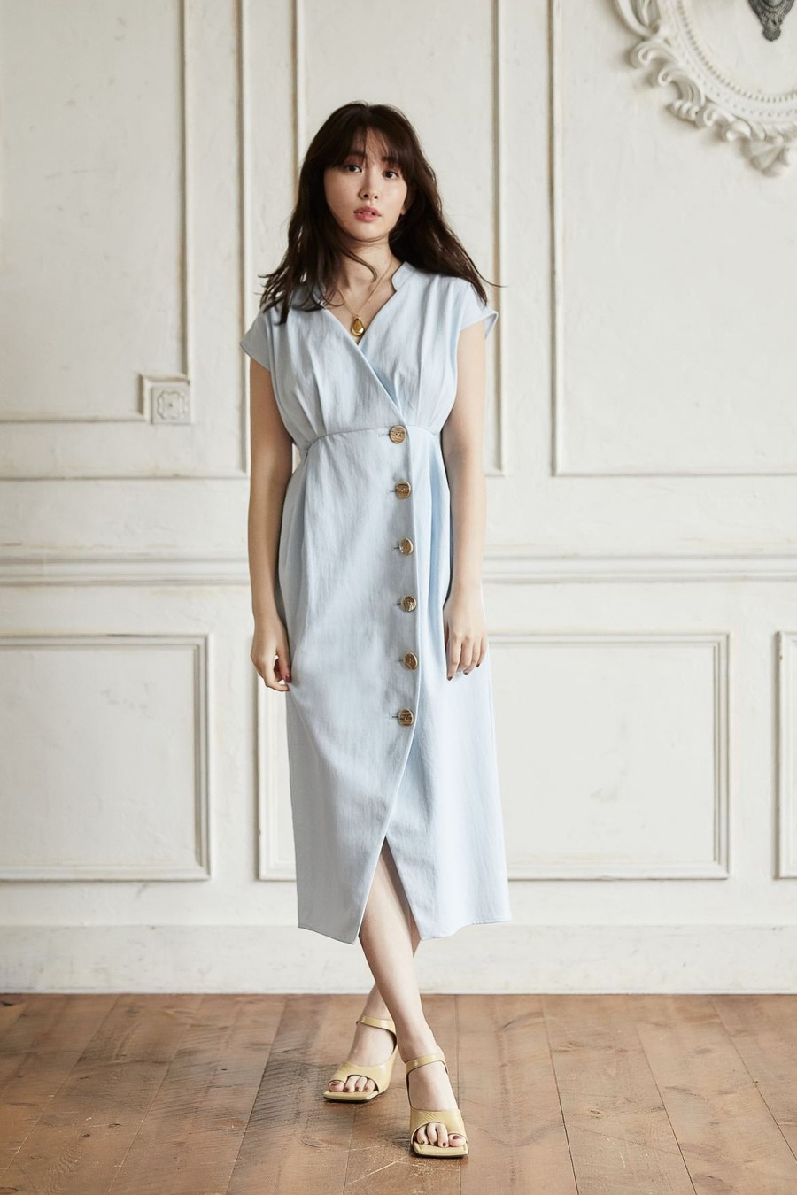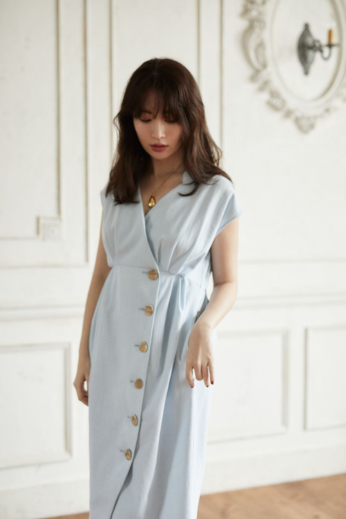 ボディラインを美しく見せるエレガントなカシュクールドレス。