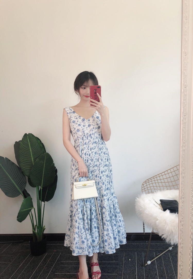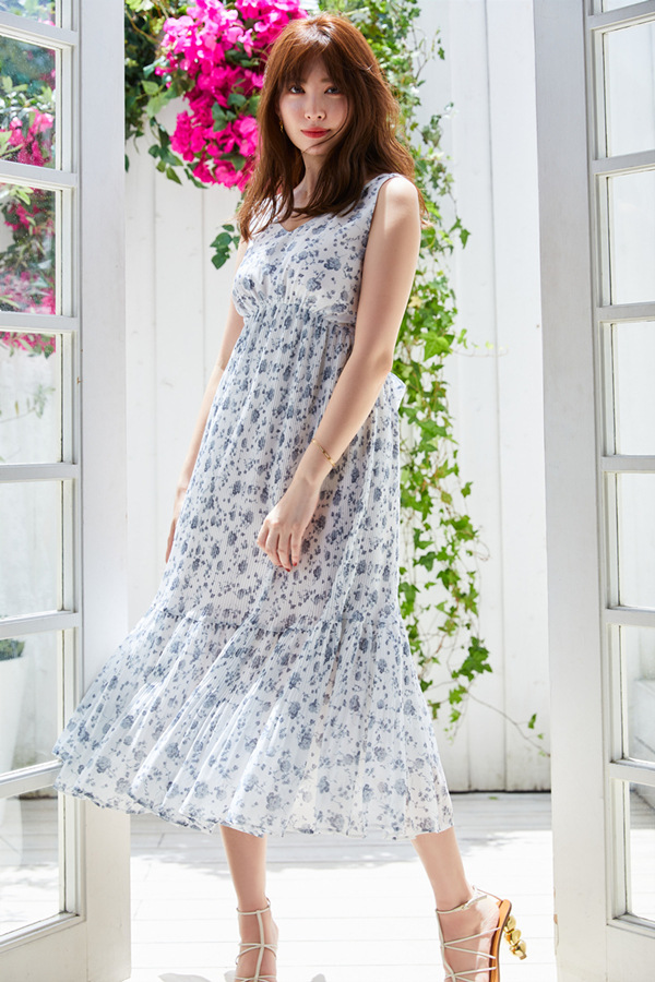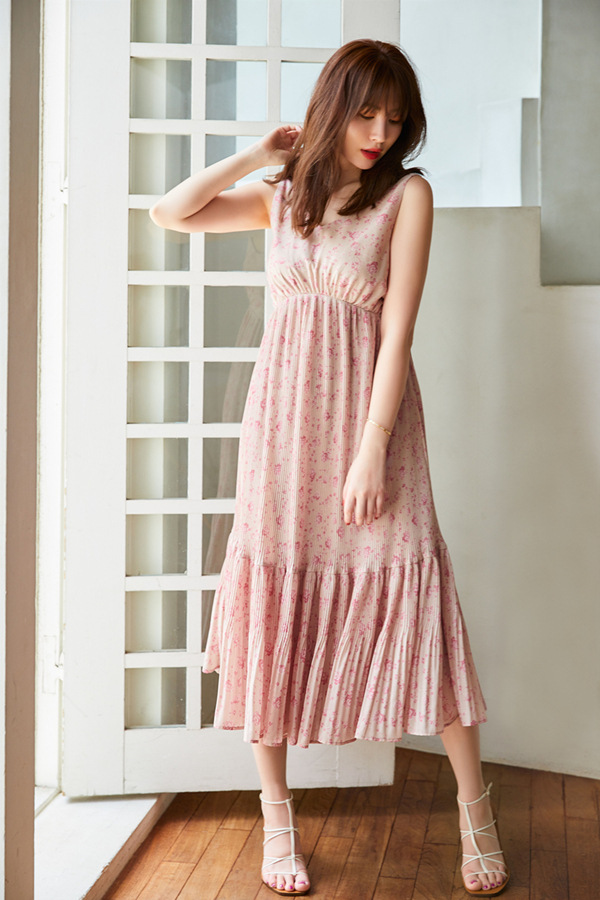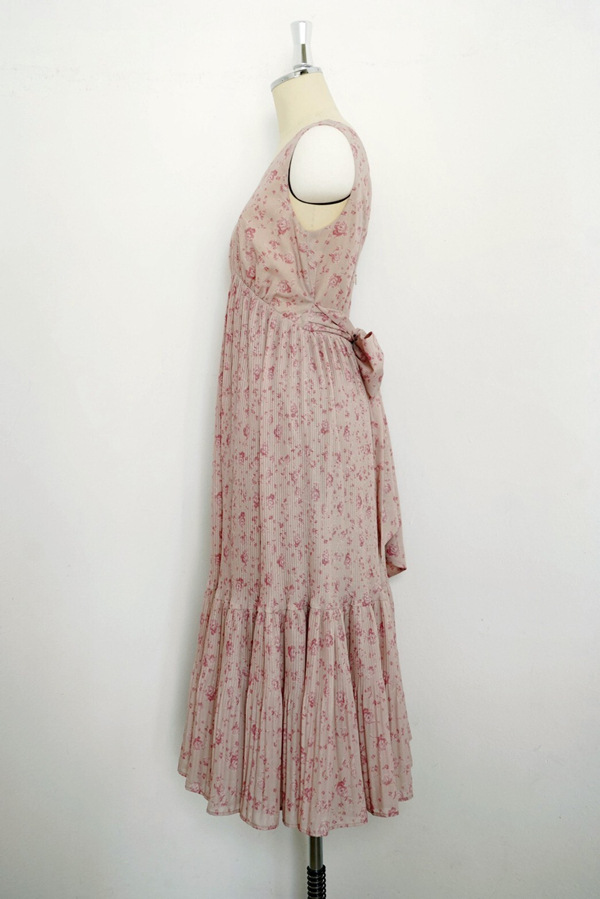 ウエストリボンベルトはフロントやバックで結ぶ事で表情を変えてお楽しみいただけます。華奢なラインを作るサマーサンダルを合わせてエレガントに。