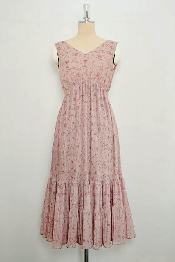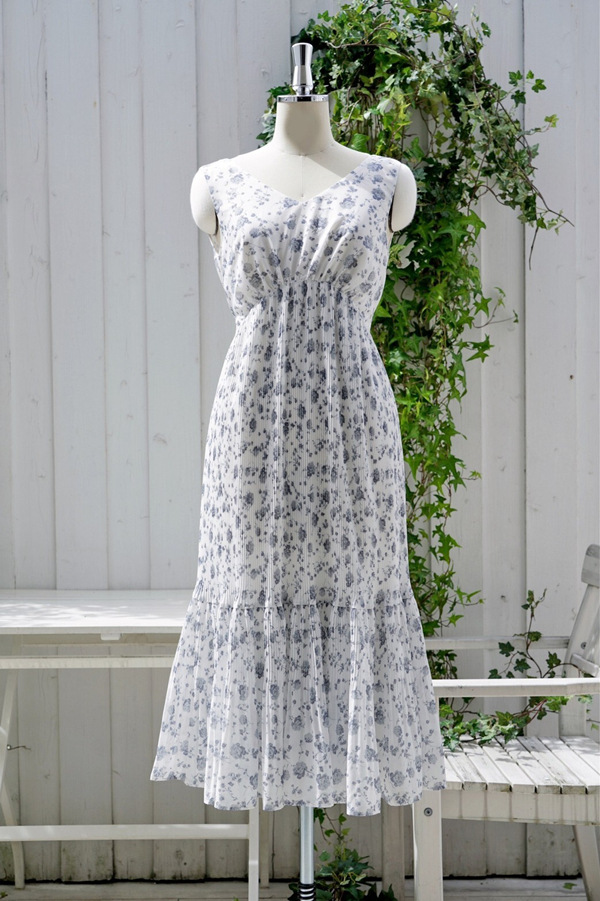 スカートに配された細やかなアコーディオンプリーツがIラインシルエットの印象を与え、歩くたびに優雅な雰囲気を演出します。ティアード下のプリーツは裾に向かい消しプリーツになっているので裾の広がりが上品で洗練された仕上がりになっています。