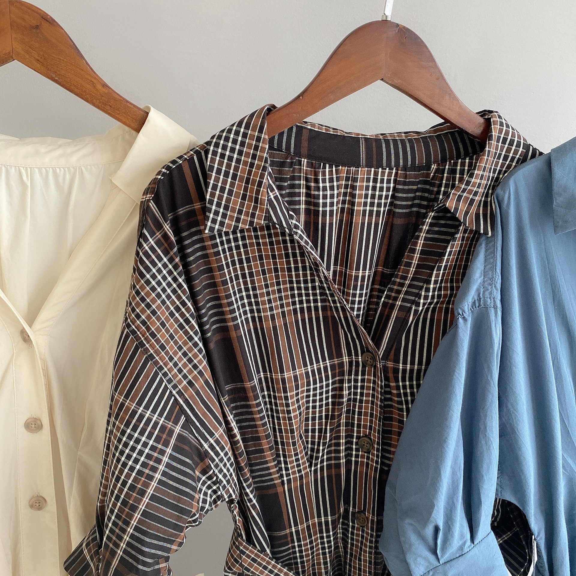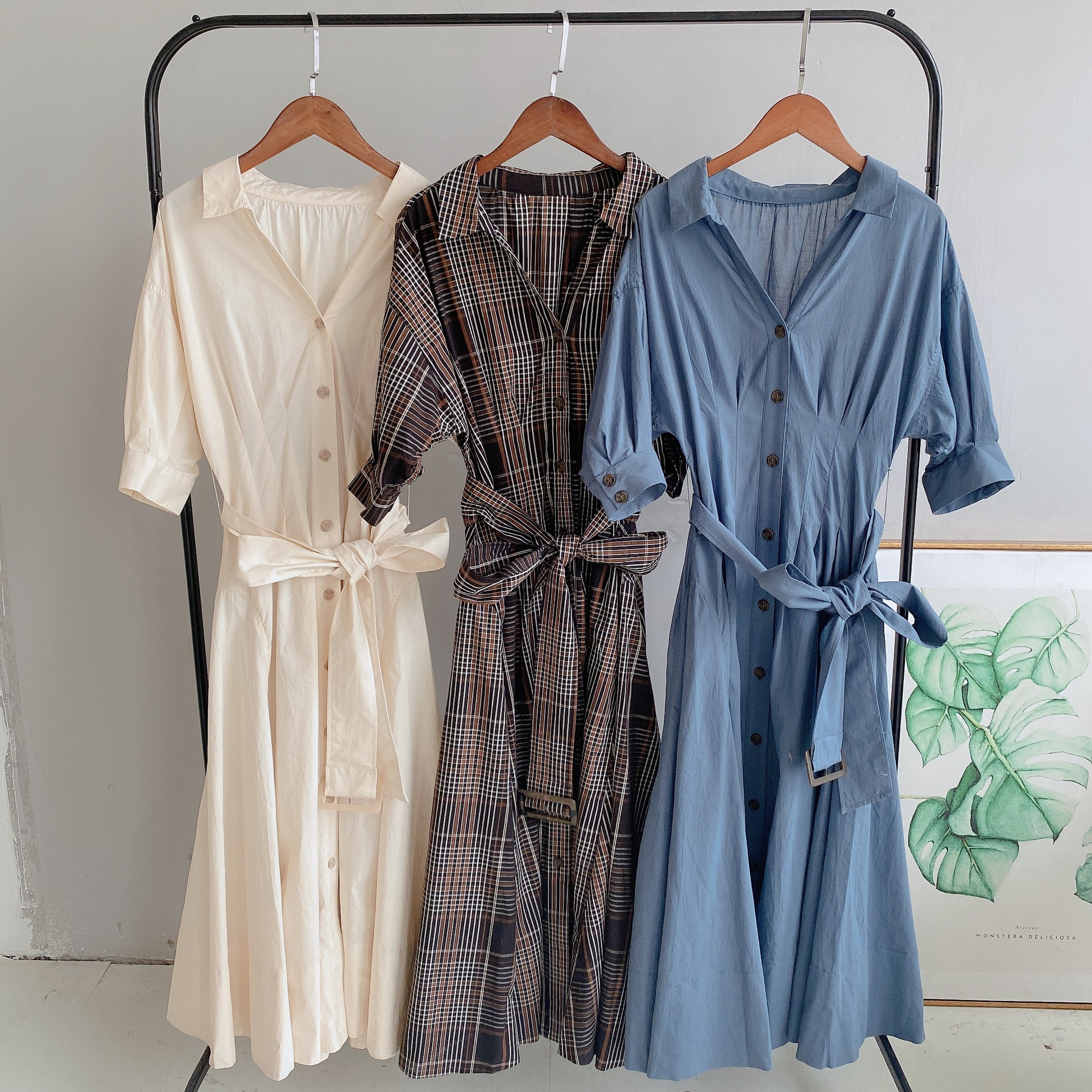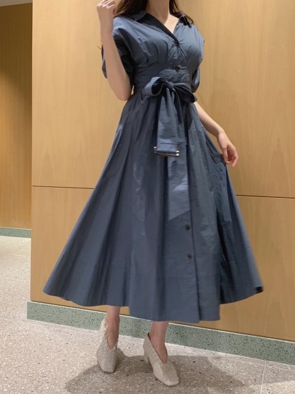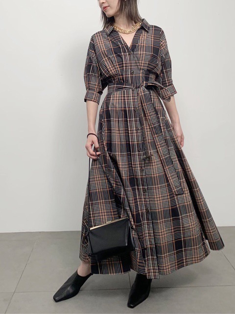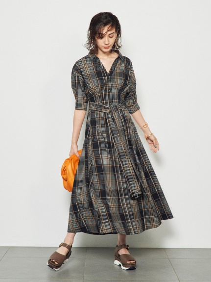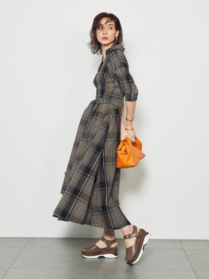 定番人気のシャツワンピースは、オリジナルの先染めチェックを取れ入れ、より秋冬らしいムードを演出。程良い“抜け”を生むVネックや立体的なパフスリーブが全体を女性らしく魅せ、エレガントさ漂うしなやかな雰囲気に。以前よりもベルトを太くすることでメリハリを出し、腰位置高めのウエスト切り替えでスタイルアップに貢献します。スカートは裾幅を広く取ることで華やかなボリュームを表現し、すっきりとした縦ラインとふんわり広がるフレアの好バランスを実現しました