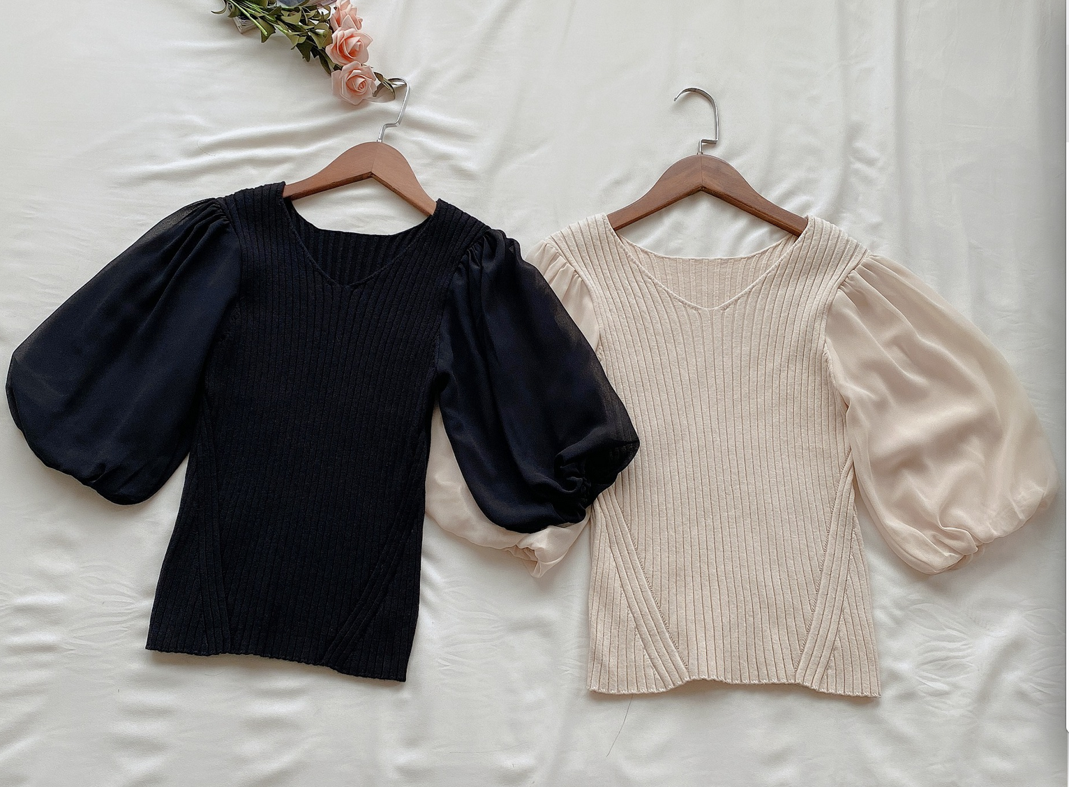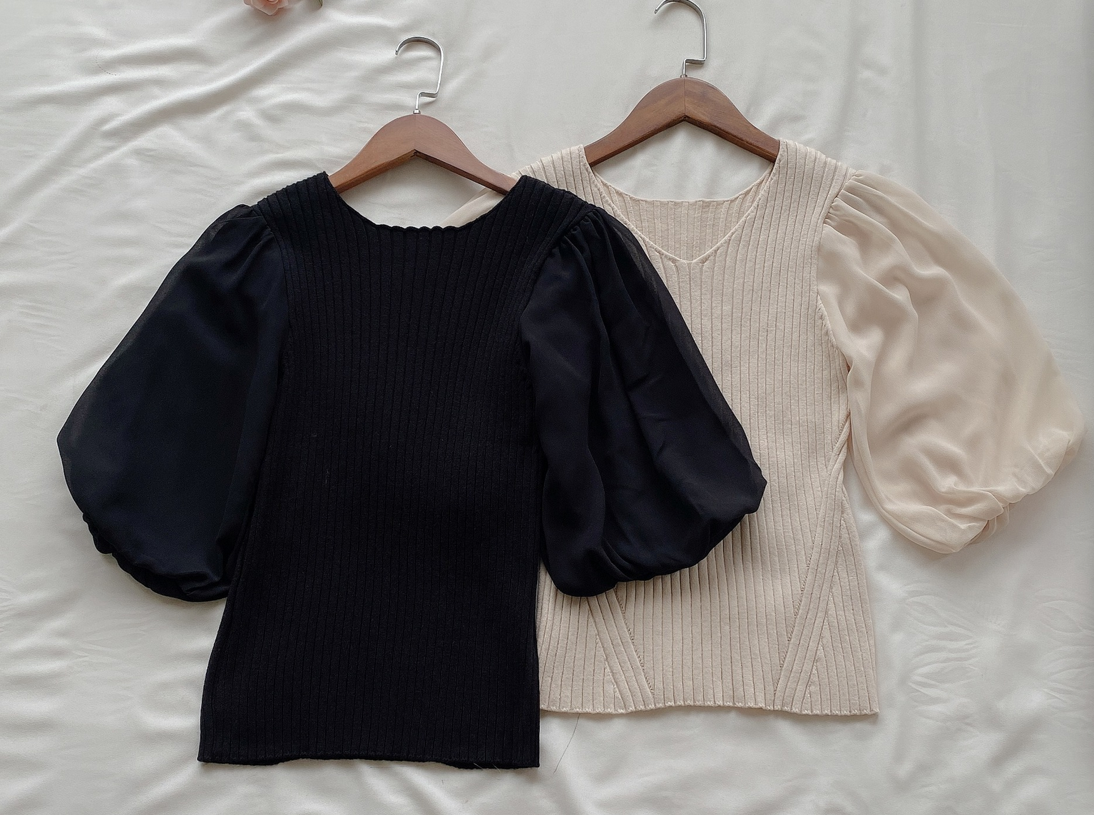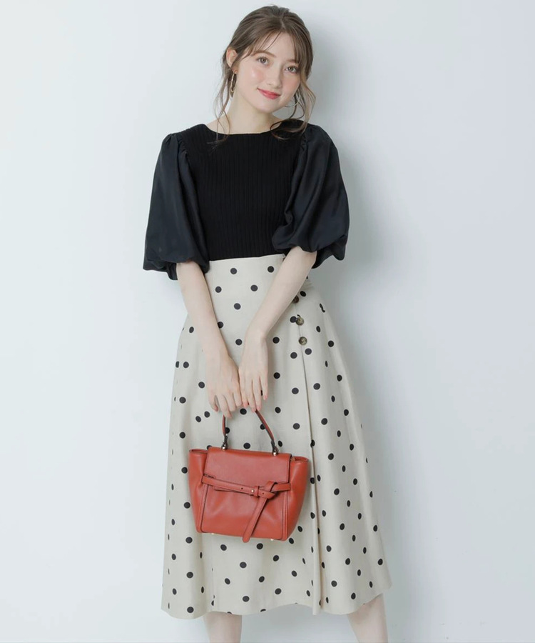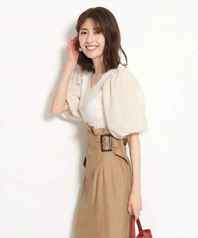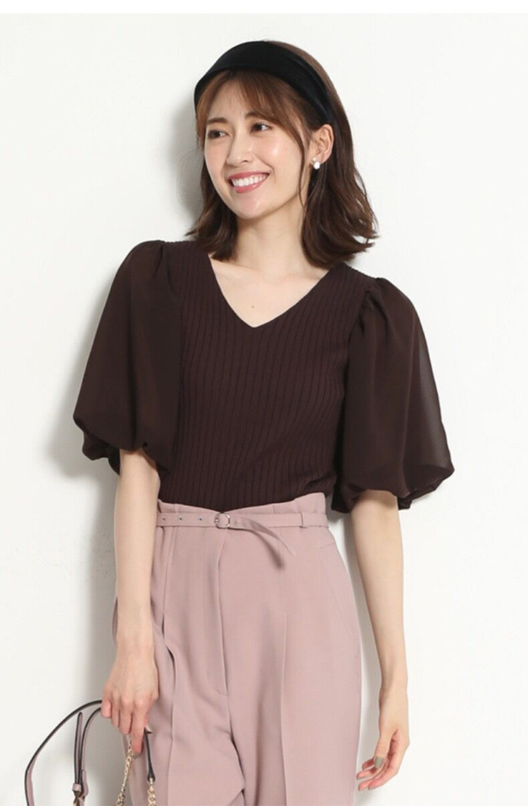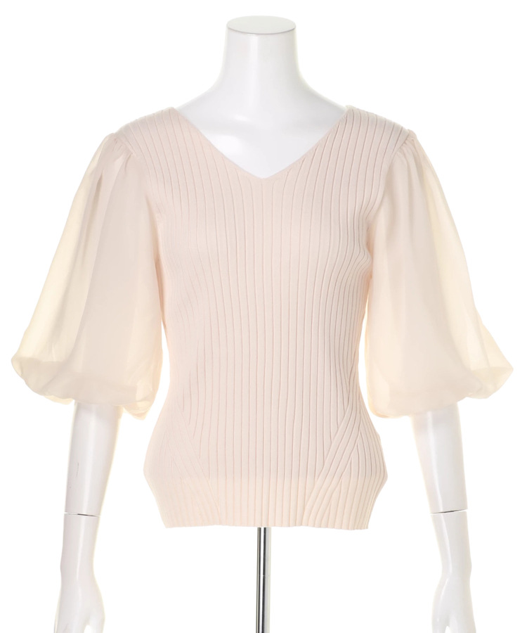 ふんわりとしたボリュームスリーブが愛らしく、大人Sweetな雰囲気を与えてくれるニット。