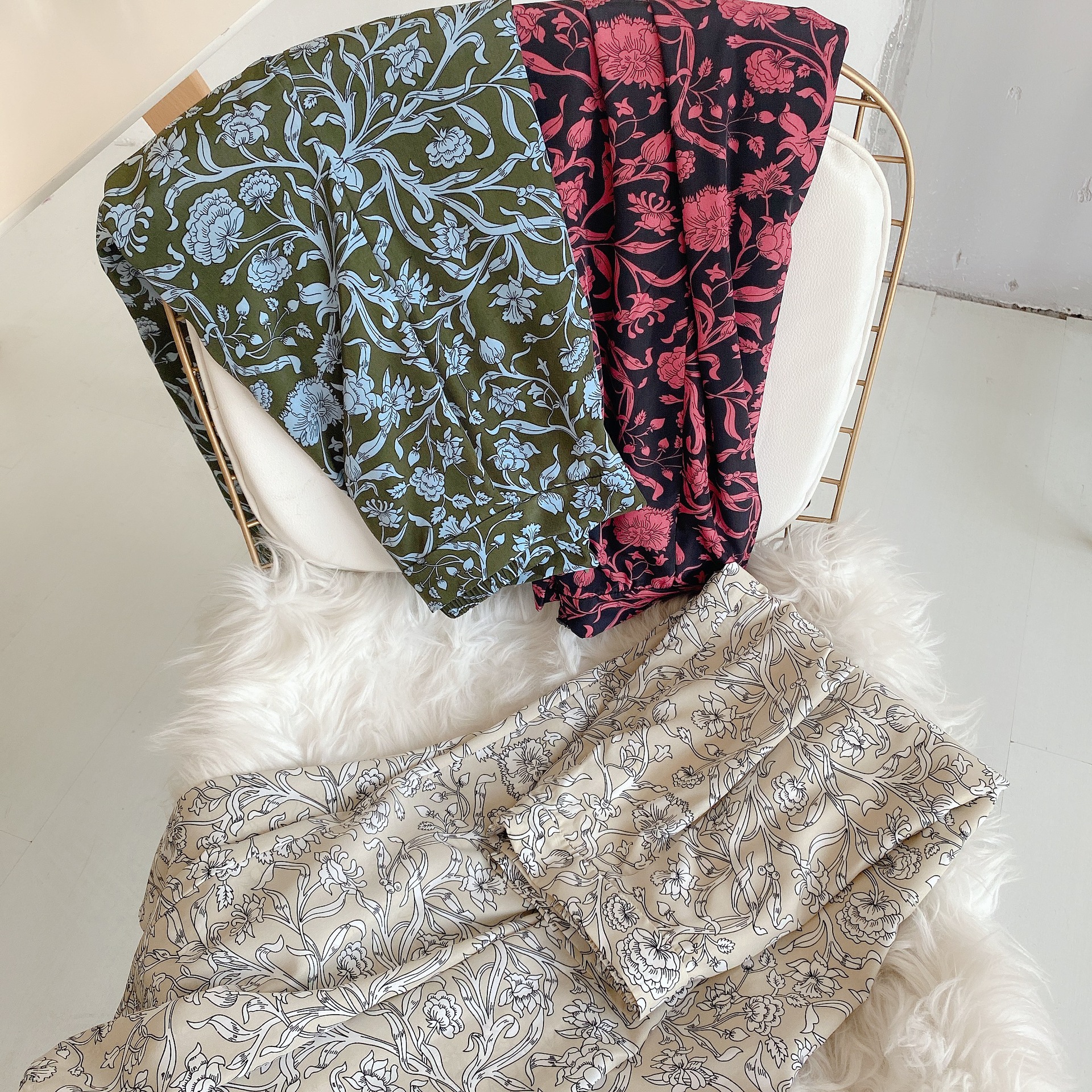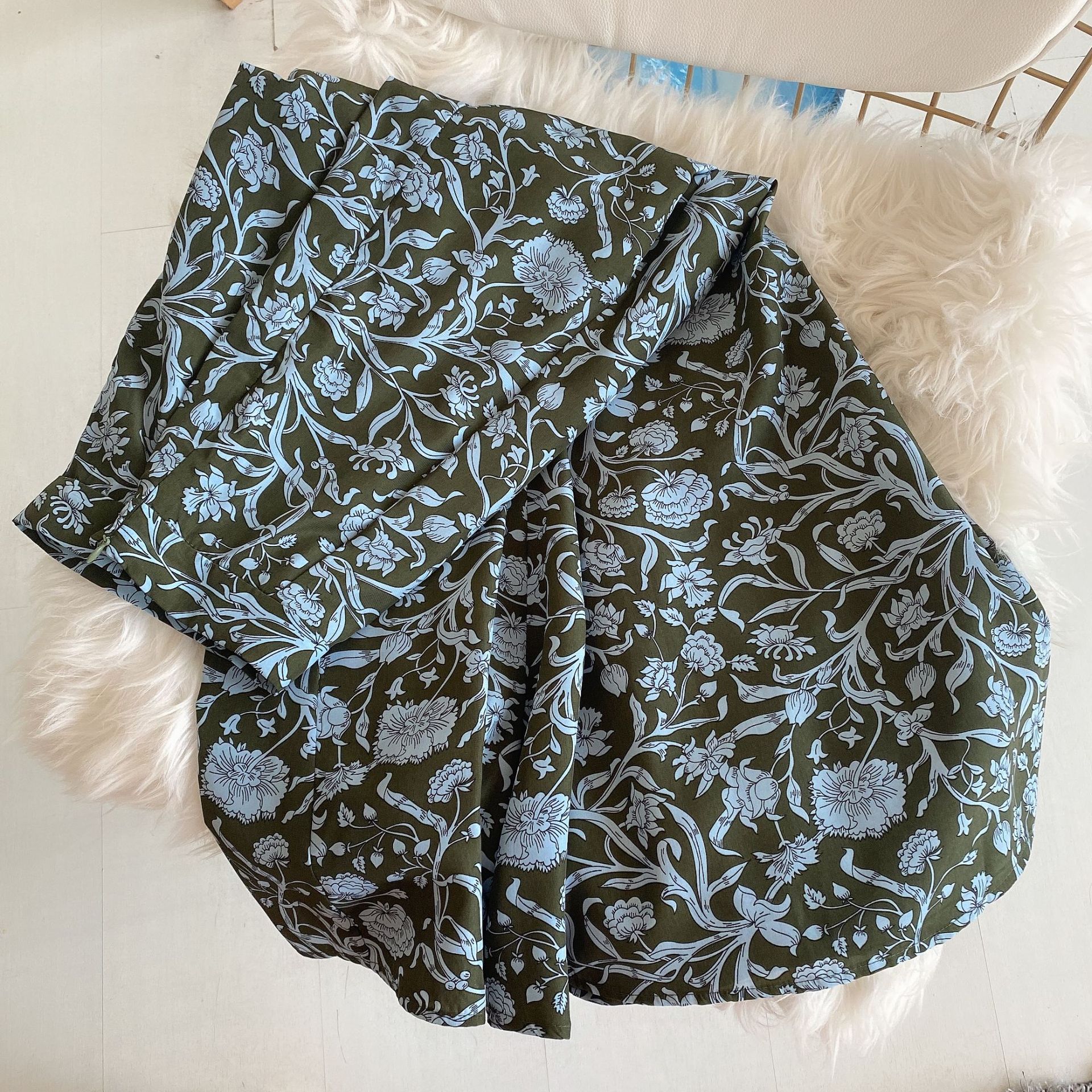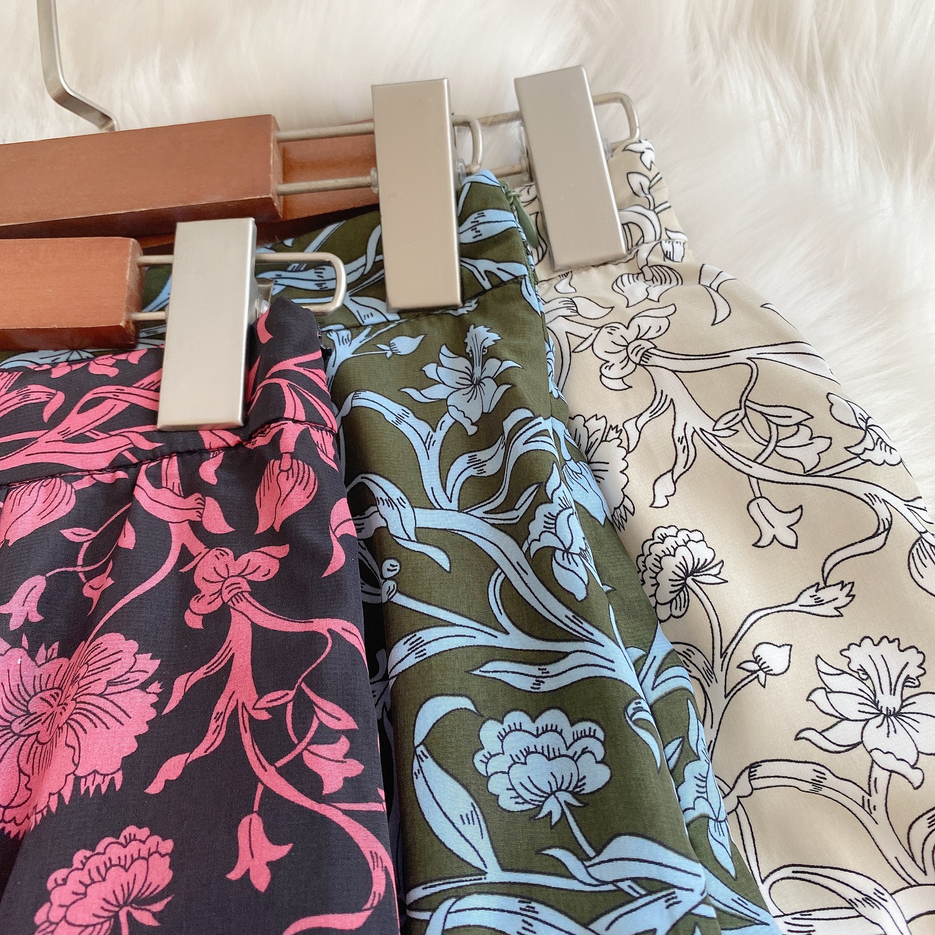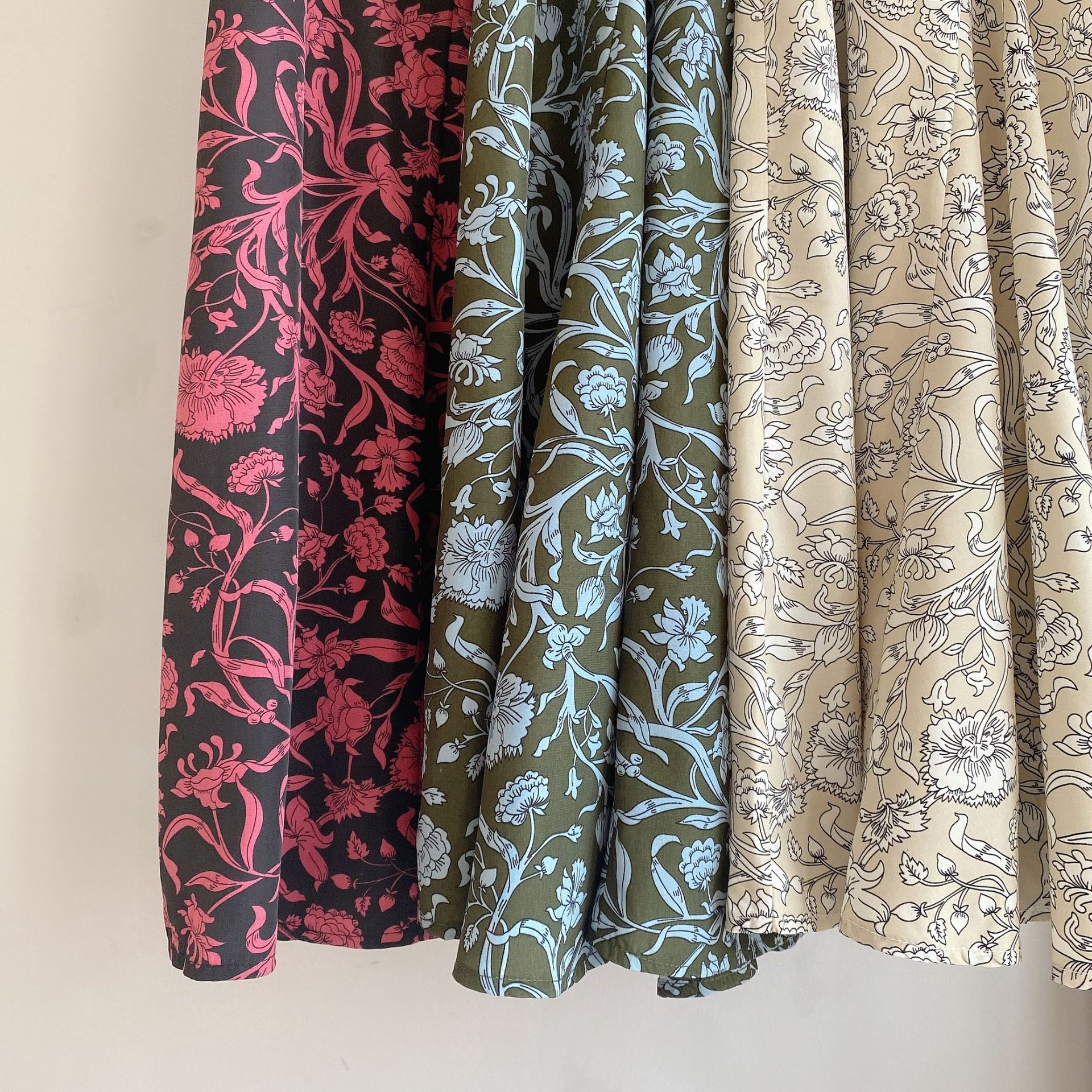 大人のロマンティックを叶えてくれる「リバティ」と「SNIDEL」とのコラボレーションライン。クラシカルな花柄が大人ムードを引き立てるロングスカートは、身体のラインを美しく魅せるナローシルエット。腰周りはすっきりと、裾にかけて可憐なフレアを描き、歩く度に揺れるドラマティックな表情で柔らかさを表現しました。後ろウエストゴムで穿き心地も良く、軽やかなルックスは様々なトップスと好相性です