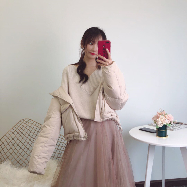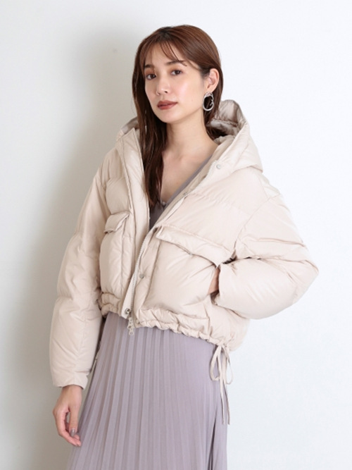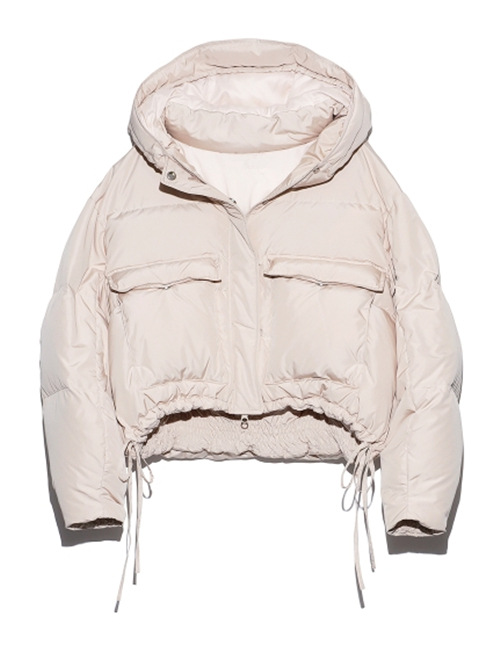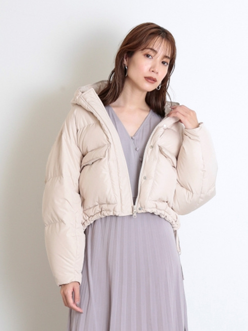 ダウンらしいボリューム感が出るよう、表地にはハリのあるリサイクルポリエステルを使用しました。内側には上質なフレンチダウンを使用。抜群の保温性を発揮し、柔軟性や放湿性に優れているのが特徴です。ベージュ、ラベンダー、ミントの、ニュアンスカラー3色をご用意しました。