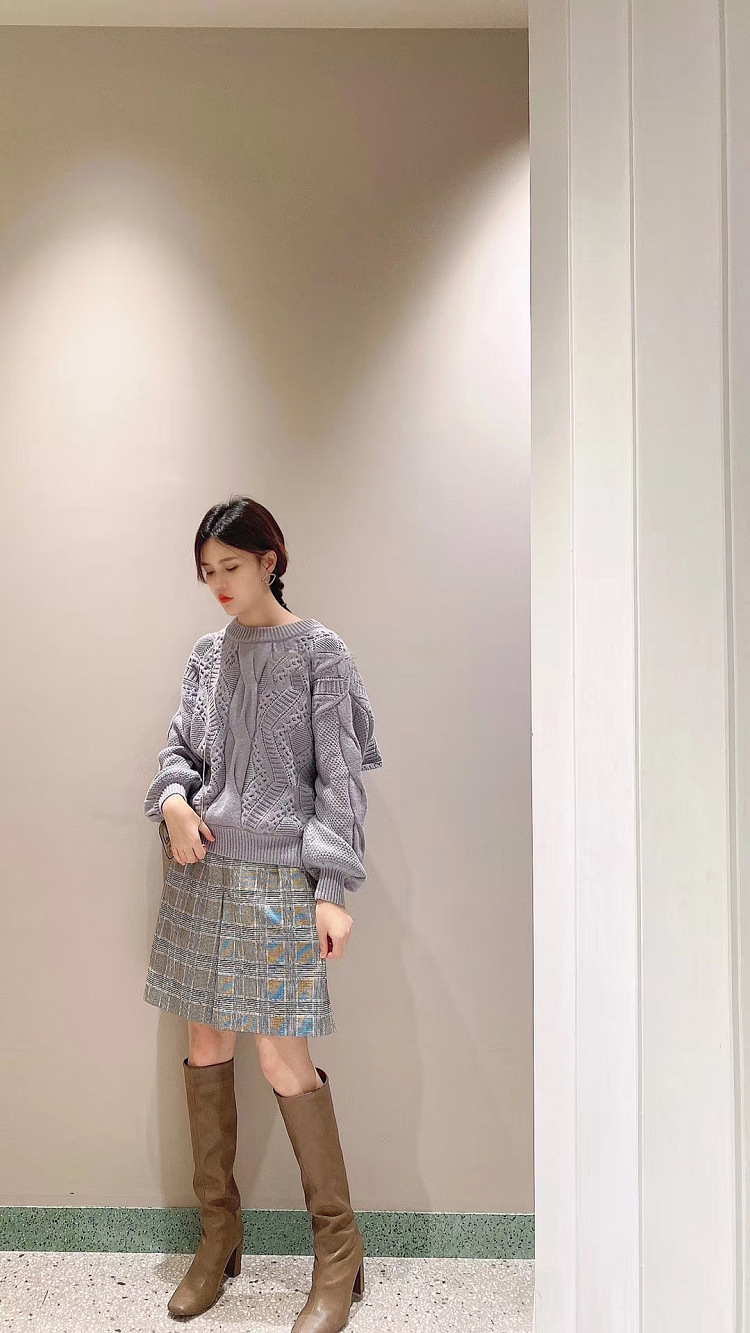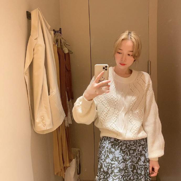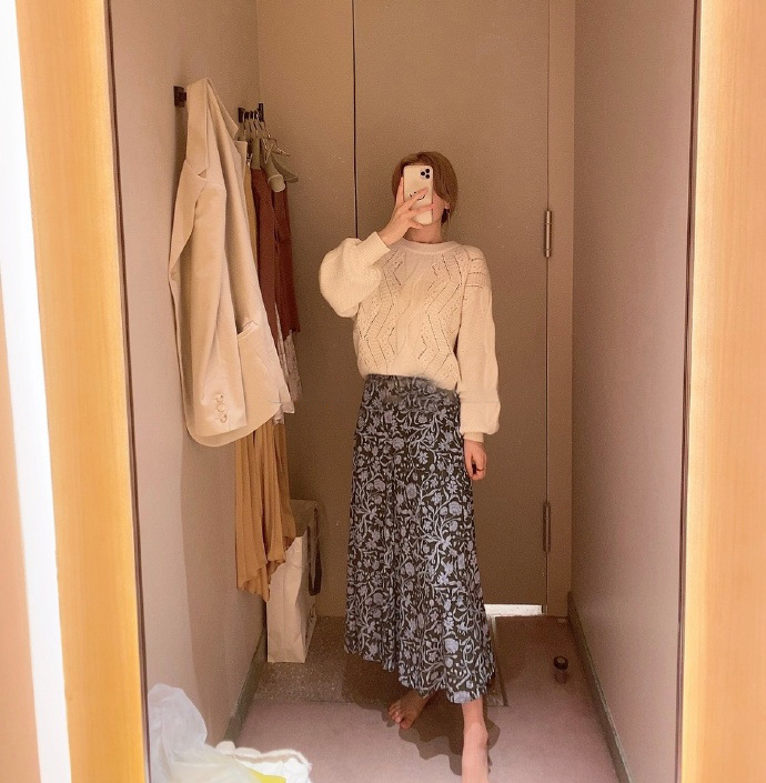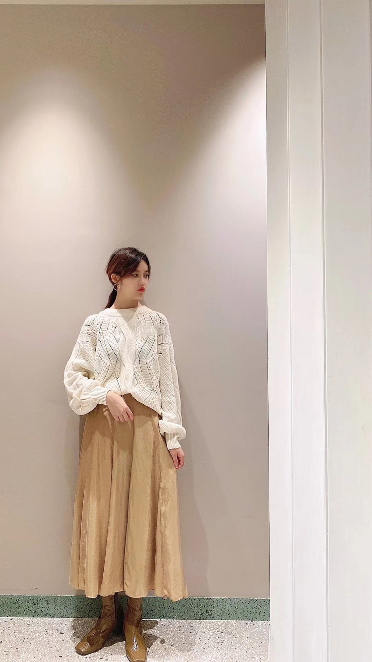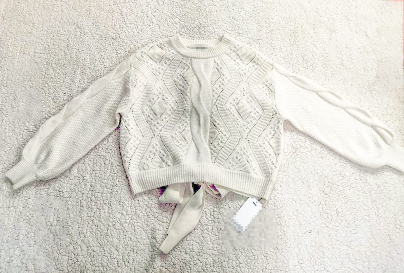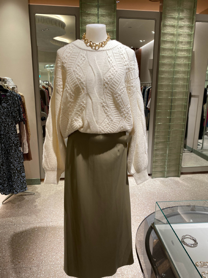 バックスタイルがポイントのケーブルニット。少し長めにボリュームを持たせた袖が女性らしく、柔らかな印象に。 素肌を見せてヘルシーに着こなしても、インナーにレースやシャツを重ねたレイヤードスタイルや、ハイウエストボトムとの合わせもおすすめです。 バックスタイルも含めアレンジが楽しめる遊び心ある一着です。