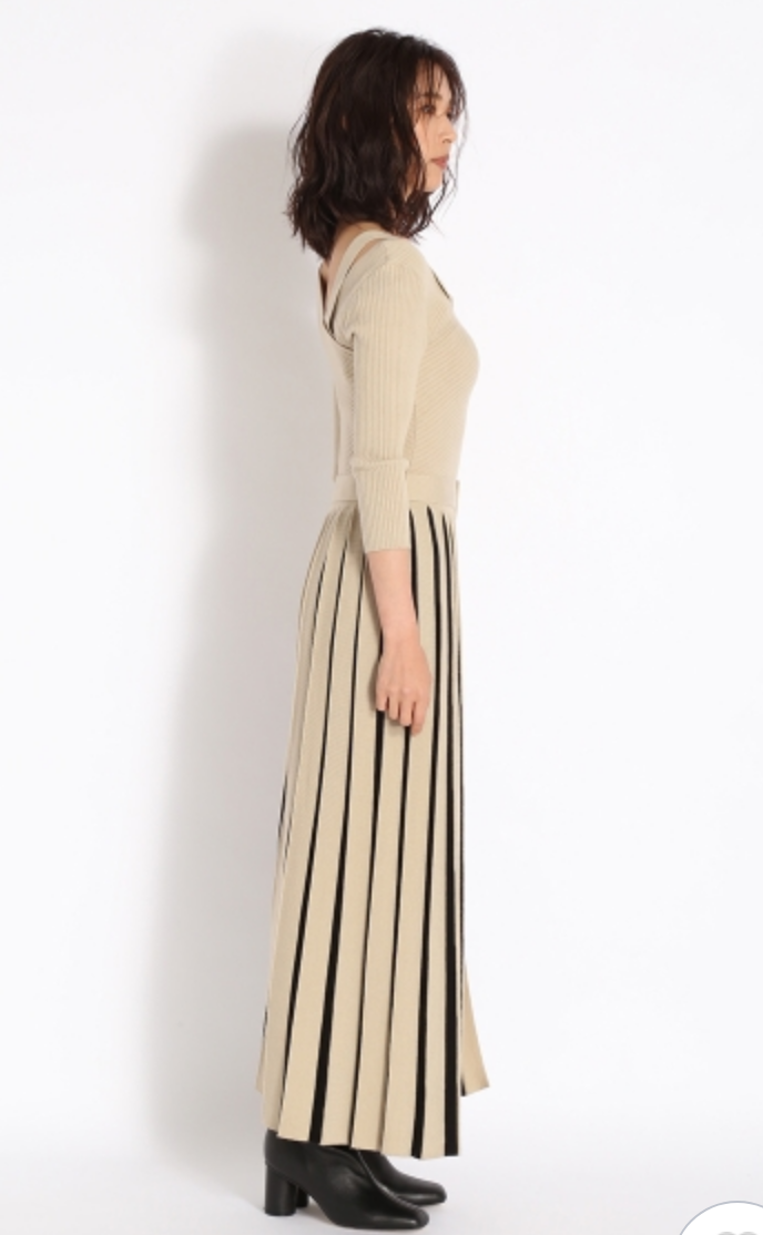 バイカラープリーツリブワンピース