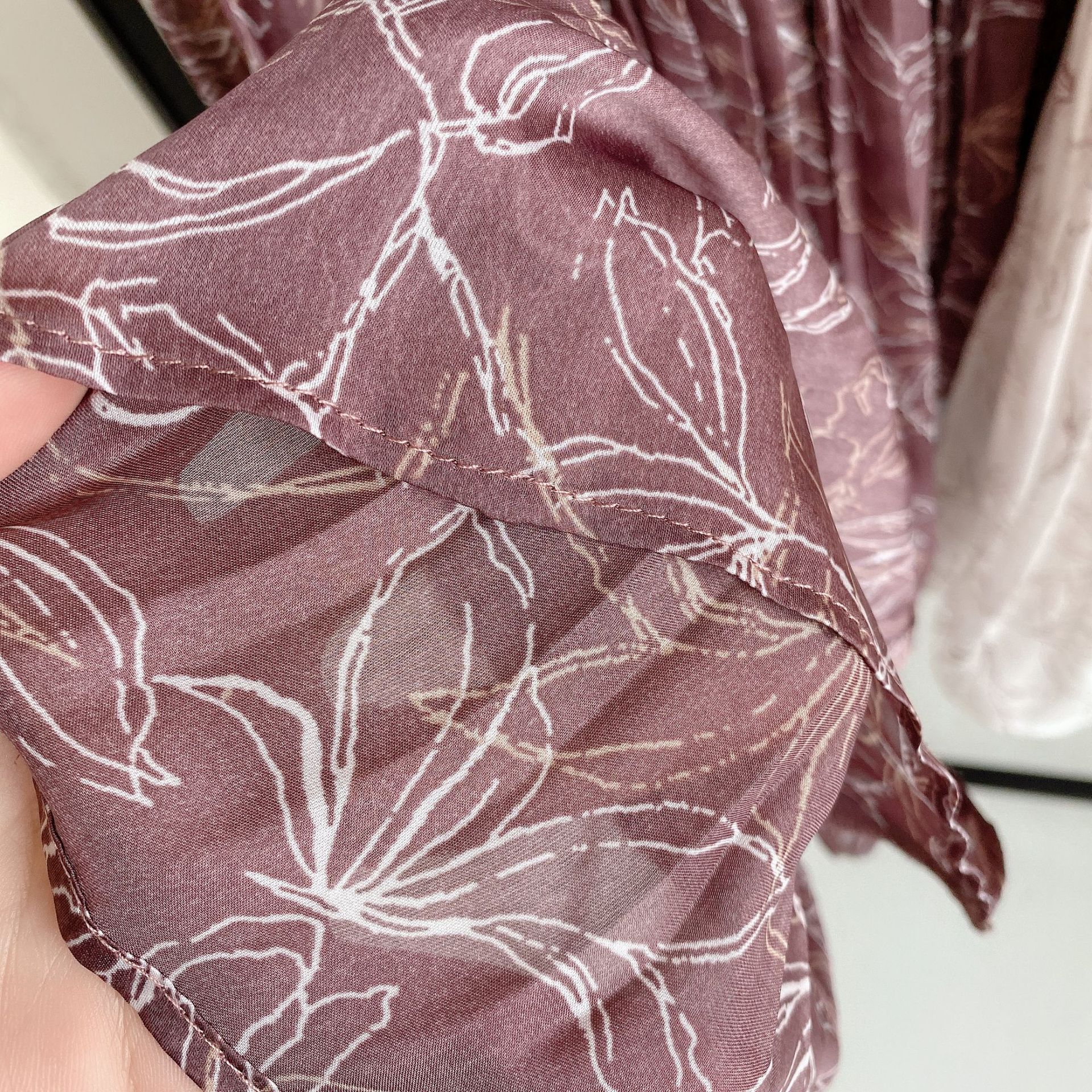 ラインフラワーウエストギャザーワンピース