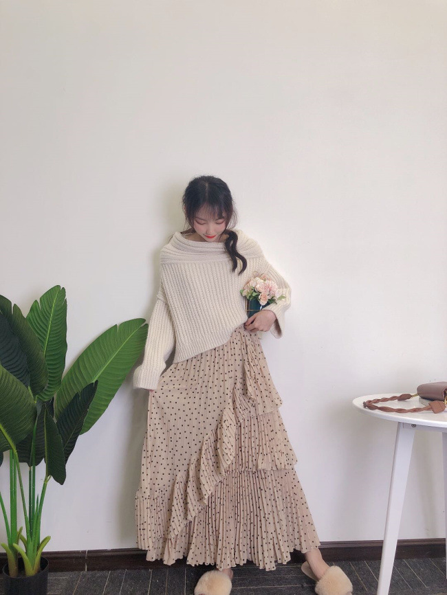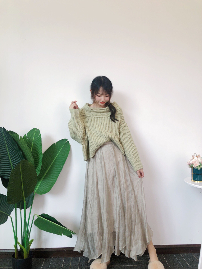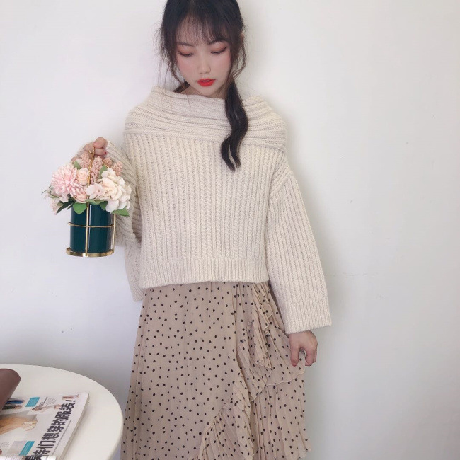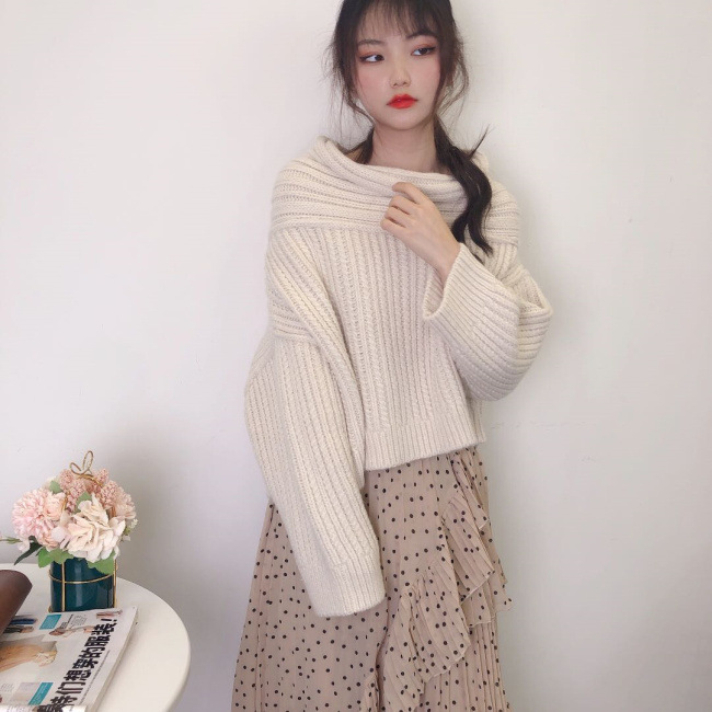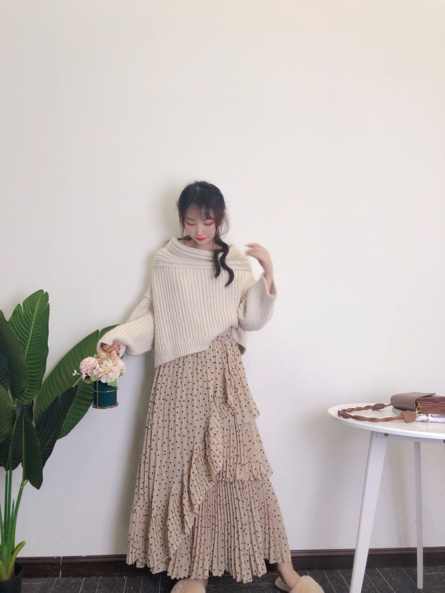 アシメケーブルニットプルオーバー