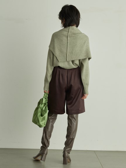 トレンドの肩巻きスタイルが叶う、プルオーバーとカーディガン風ショールのセットアイテム。レイヤード専用にデザインしたショールは巻いた際のシルエットにこだわり、一枚仕様なので結び目がもたつかず、ラフに纏ってもすっきりとしたスタイルがきまります。シンプルながら洒落感は抜群に、コーディネートに今季らしい新鮮さを呼び込みます。