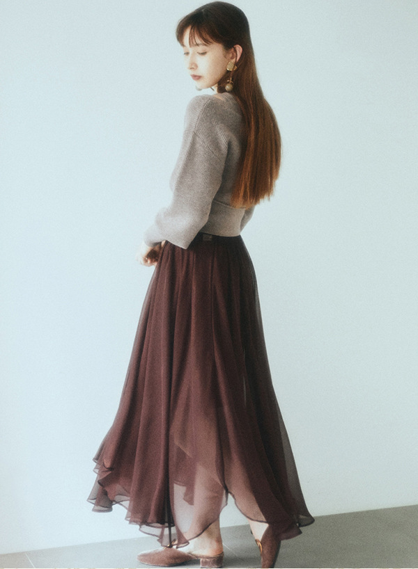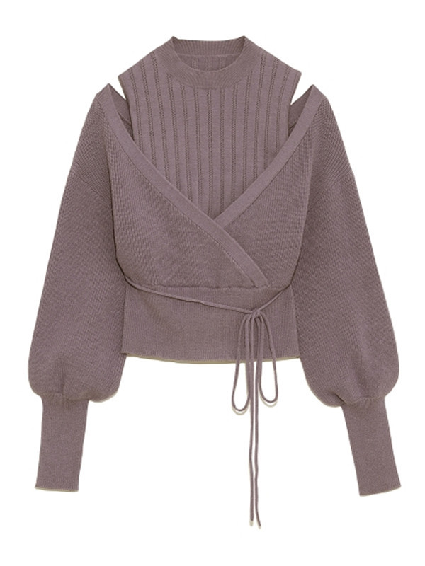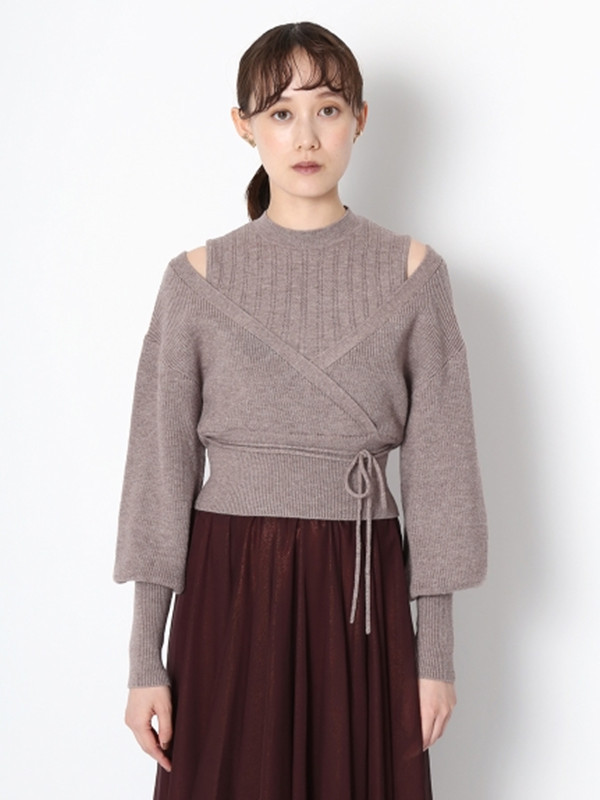 ノースリ-ブニットとカーディガンをドッキングしたような、フェイクレイヤードトップス。ニットには程よい透け感の柄編みを、カーディガンには温もりある畔編みを取り入れ、異なる編み地をミックスしスタイリングに奥行きをプラスしました。女性らしい立体的なパフスリーブや、ウエストの太リブ切り替えがスタイルアップ効果を施し、鮮度の高いこなれ感ある装いを叶えます。トップスIN/OUTどちらもしやすい、ジャストな丈感でデザインしました。