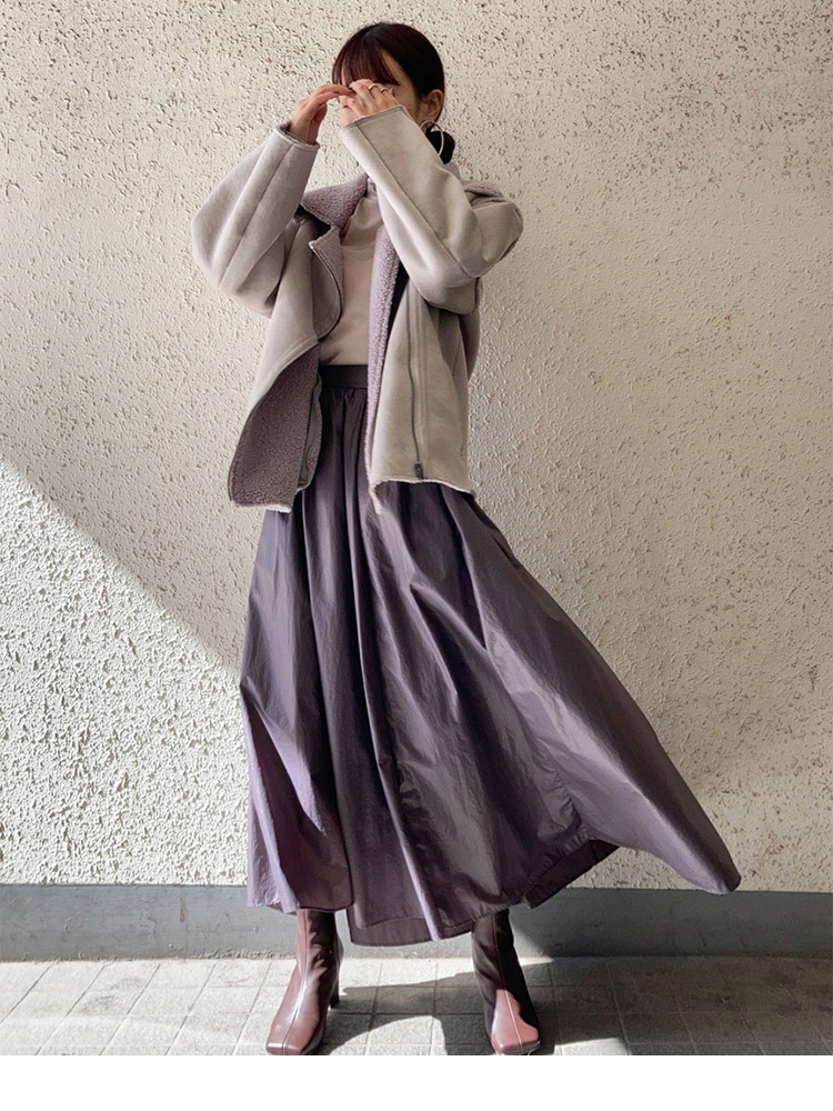 軽くふわっとした滑らかな肌触りが特徴の、エコファーボアジャケット。大きな襟や計算された背抜きデザインなど、ラフに纏うだけで色香漂うルックスを表現しました。ヒップが隠れるやや長めの丈感は様々なボトムスとバランスが取りやすく、トレンドのロングブーツやマキシアイテムとも好相性。ニュアンスカラーとしなやかな生地がフェミニンな装いを加速させる、「SNIDEL」の女性らしさを存分に詰め込んだ一枚です。