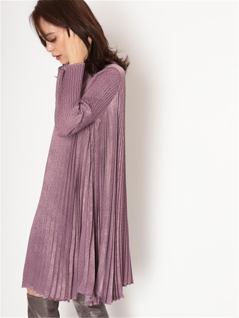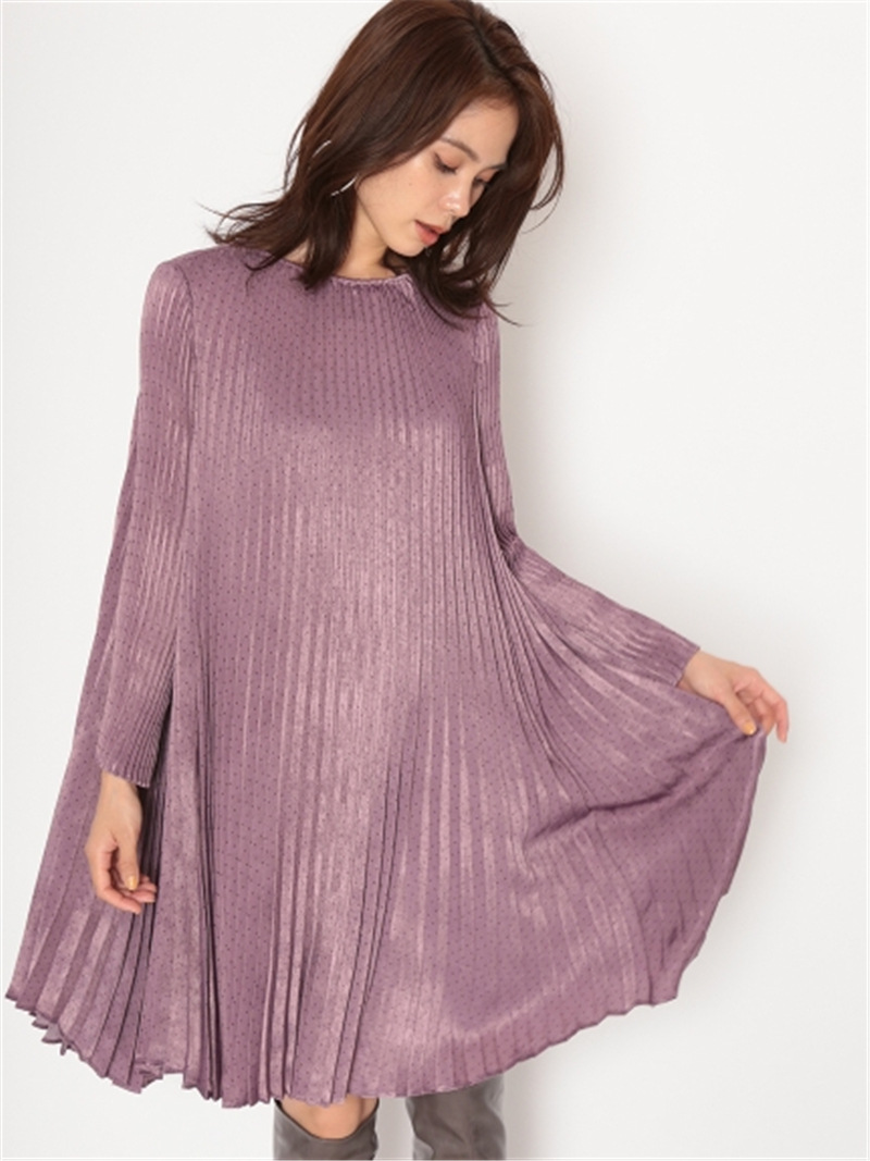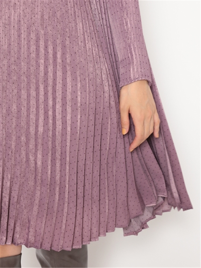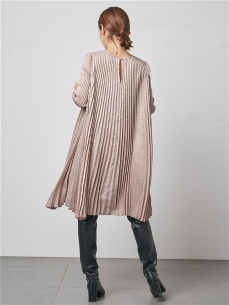 サテンプリーツドットワンピース