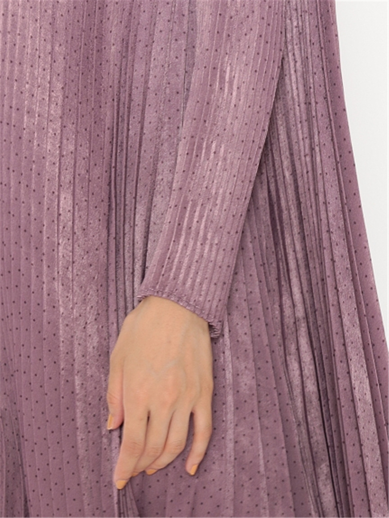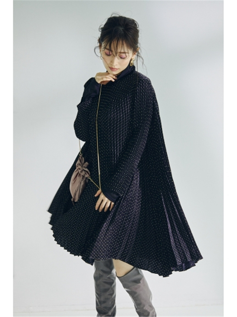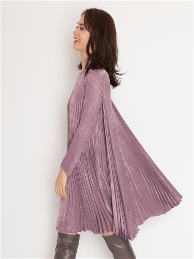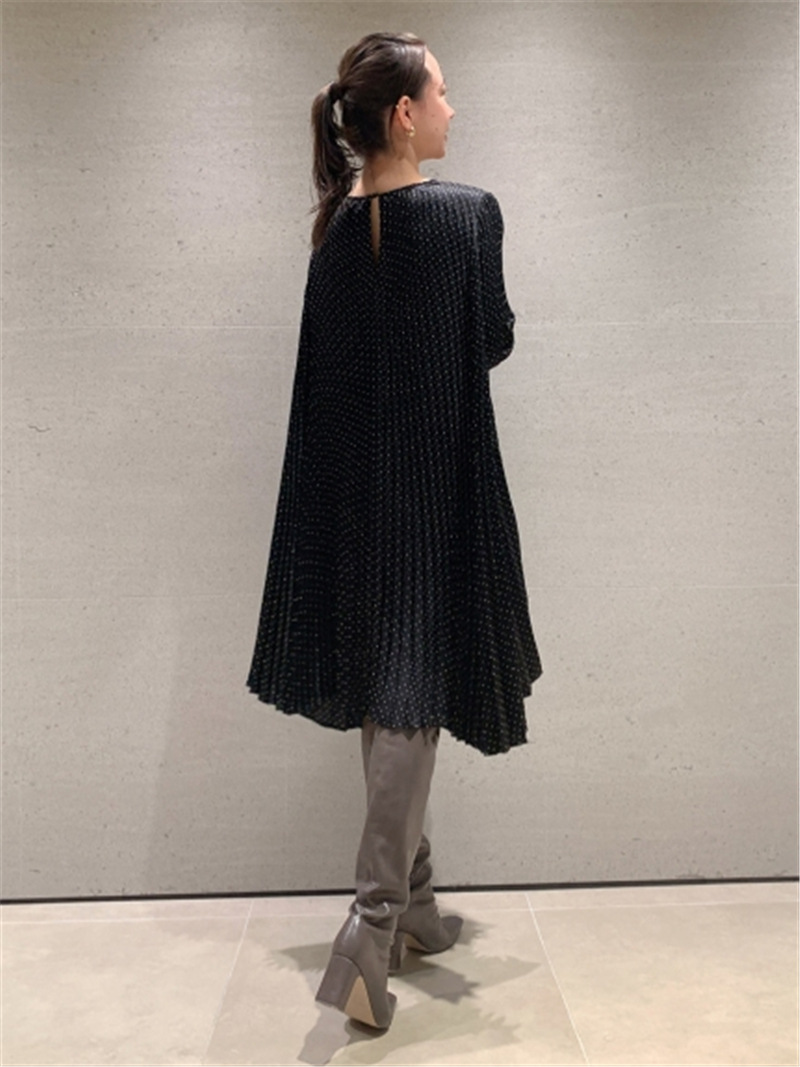 サテンプリーツドットワンピース