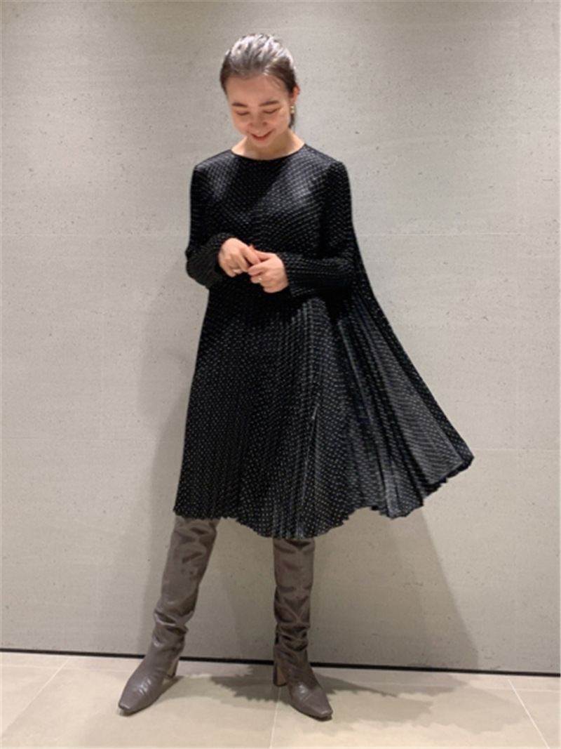 裾のかけて広がるプリーツがモードに印象付ける、今季トレンドの膝丈ワンピース。プリーツ加工で落ち感と縦ラインを出しつつ、両サイドに重さを持たせたフレアシルエットで、歩く度に揺れるドラマティックな装いを叶えました。生地分量もたっぷりに、女性らしい装いでコーディネートが華やぎます。暖かみのあるカラーにシックなドットをのせ、「SNIDEL」らしい特別感を演出。ロングブーツやパンツレイヤードのスタイリングがおすすめです。