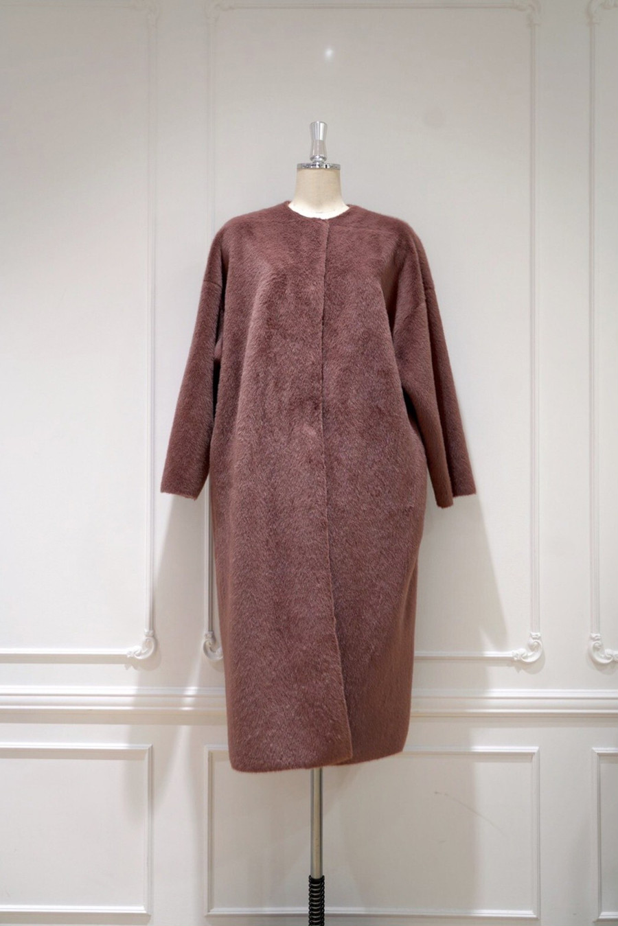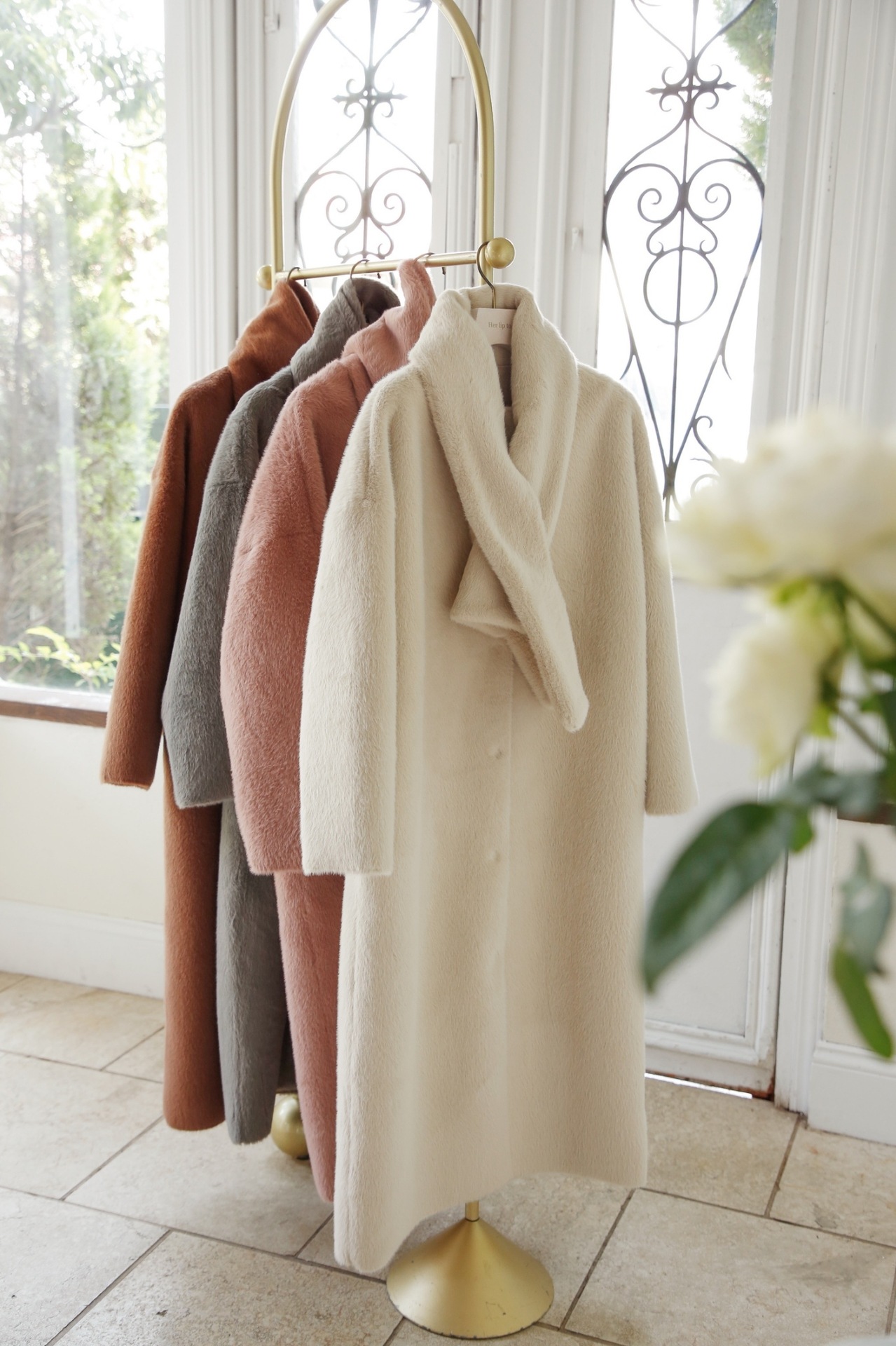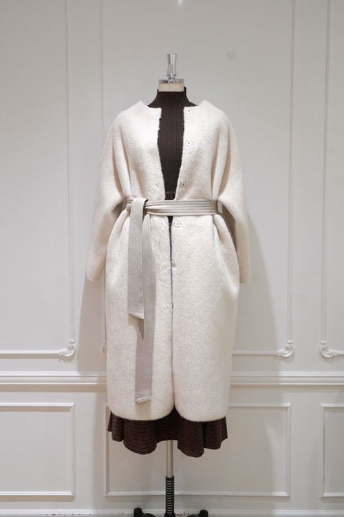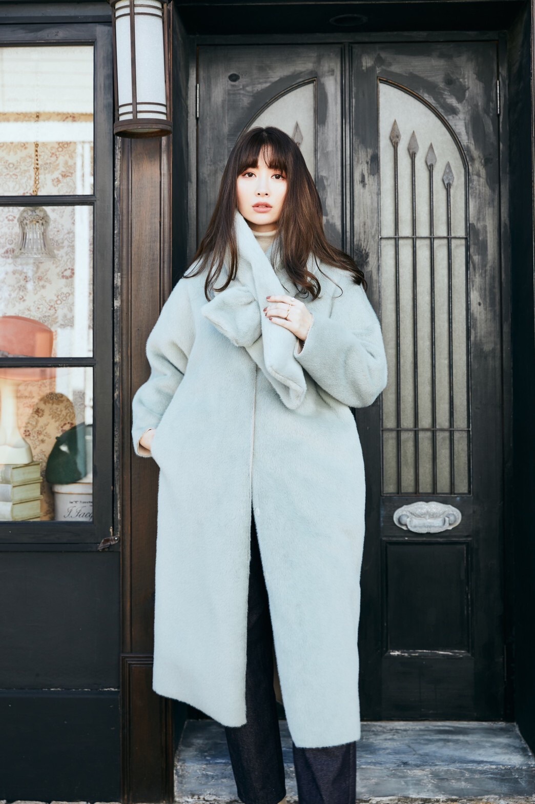 体を包みこむゆったりとしたエッグラインシルエットで、トレンドのローゲージニットに合わせても綺麗にお召しいただけます。スナップボタンで着脱がしやすく美しいシルエットの邪魔にならない仕様。