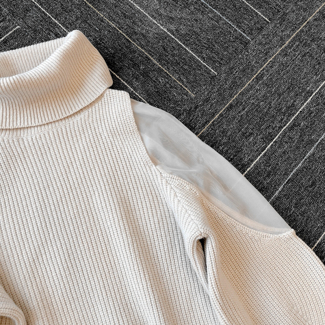 定番人気のシアーショルダーニットがこの冬も登場。一枚で華やぐフェミニンなルックスをベースに、シアー部分の切り替えや編み地にこだわり今シーズンらしいトレンド感のある装いへとアップデートしました。肩の肌見せが大人の色香を纏い、オフタートルやボリュームスリーブで女性らしさを表現。ボリュームスカートと合わせて甘く、パンツに合わせてカジュアルに、様々なボトムスにマッチする丈でデザインしました。