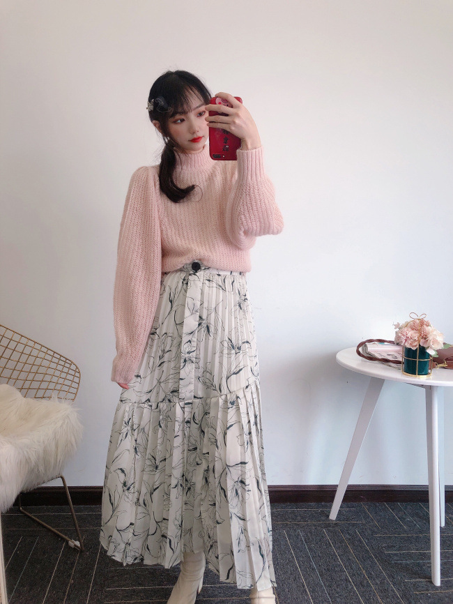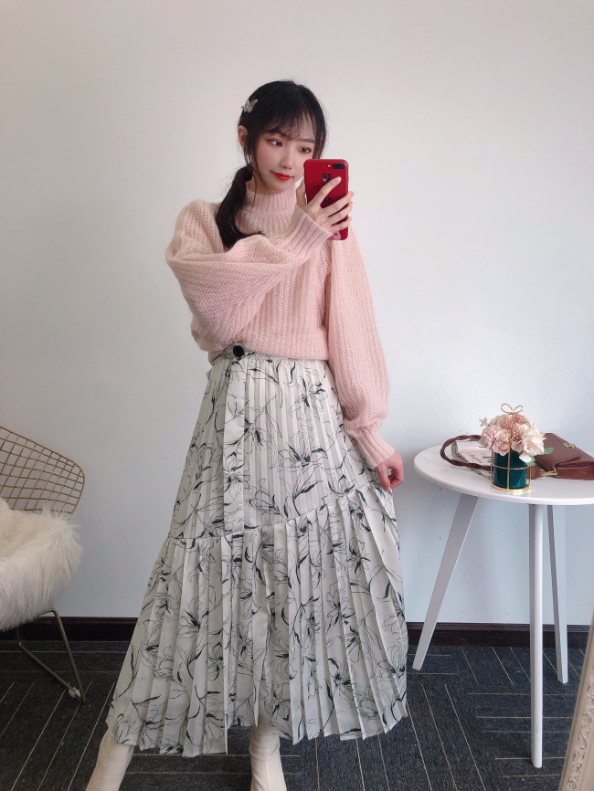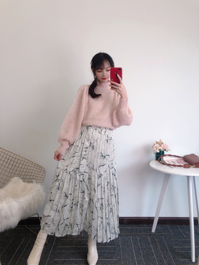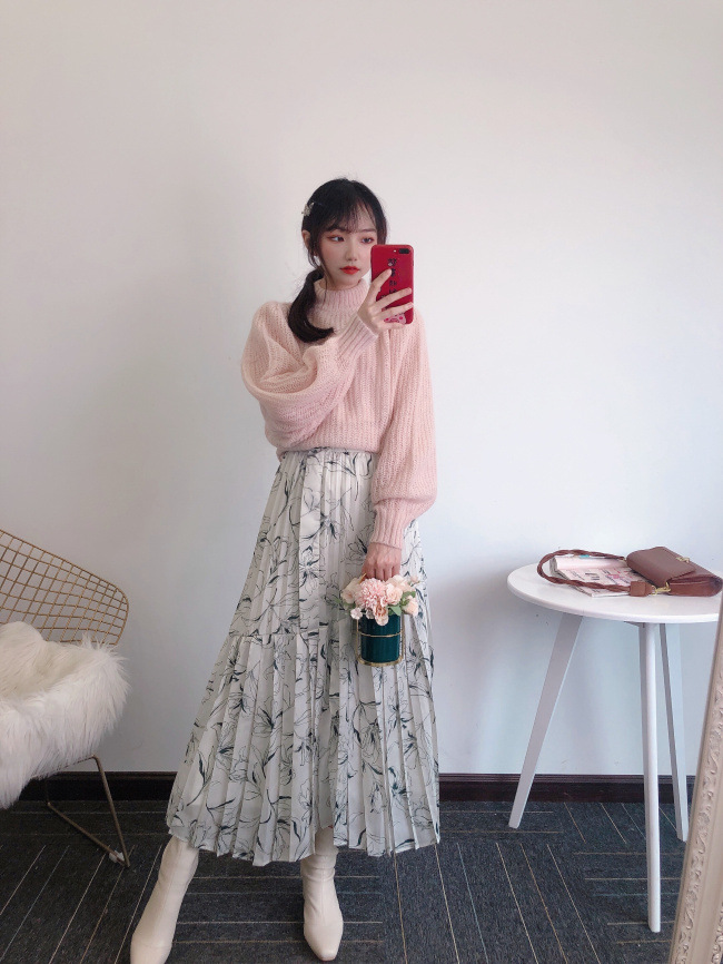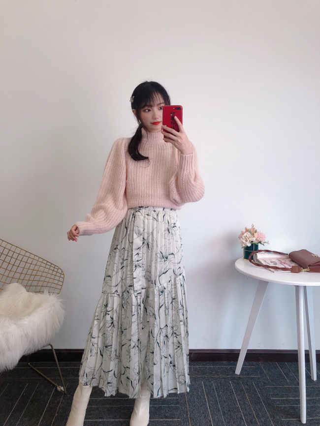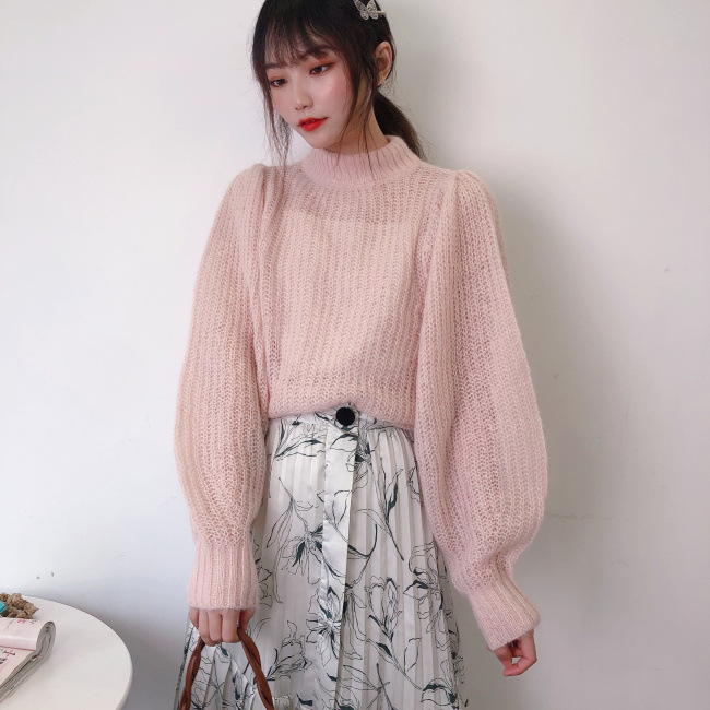 ローゲージのざっくり感とモヘアのふわふわな質感を掛け合わせた、華やかな透け感が魅力のニット。モックネックで品の良さをキープしつつ、広めのアームホールとボリュームスリーブで愛らしさを演出。しっかりと詰まった太い裾リブがウエストカーブにフィットし、IN/OUTどちらも綺麗に映える美しいシルエットを実現しました。ハイウエストボトムスと相性の良い丈で、ナロースカート(品番SWFS205078)とのコーディネートがおすすめ。インナーキャミソールがセットになっています。