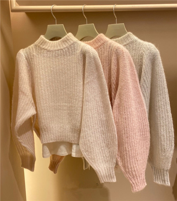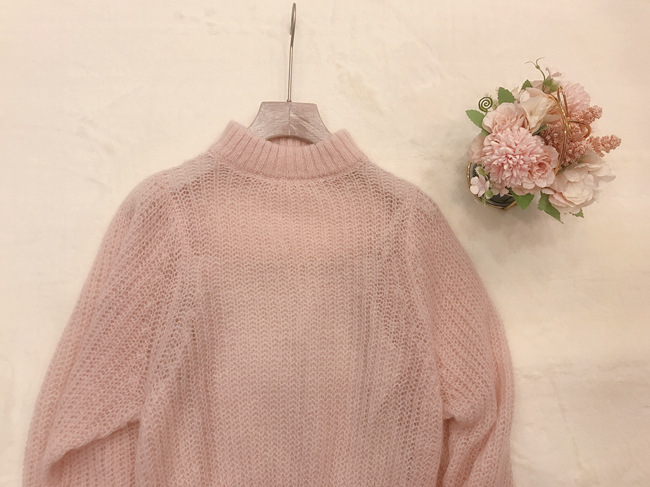 起毛感のあるモヘア、暖かみのあるウール、ナイロンをミックスしたニットを使用しました。襟裏にはコットン糸を使用し、肌触りの良さにこだわりました。ホワイト、ピンク、グリーンの3色展開です。