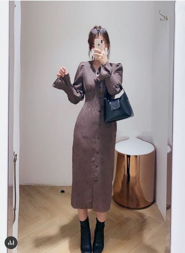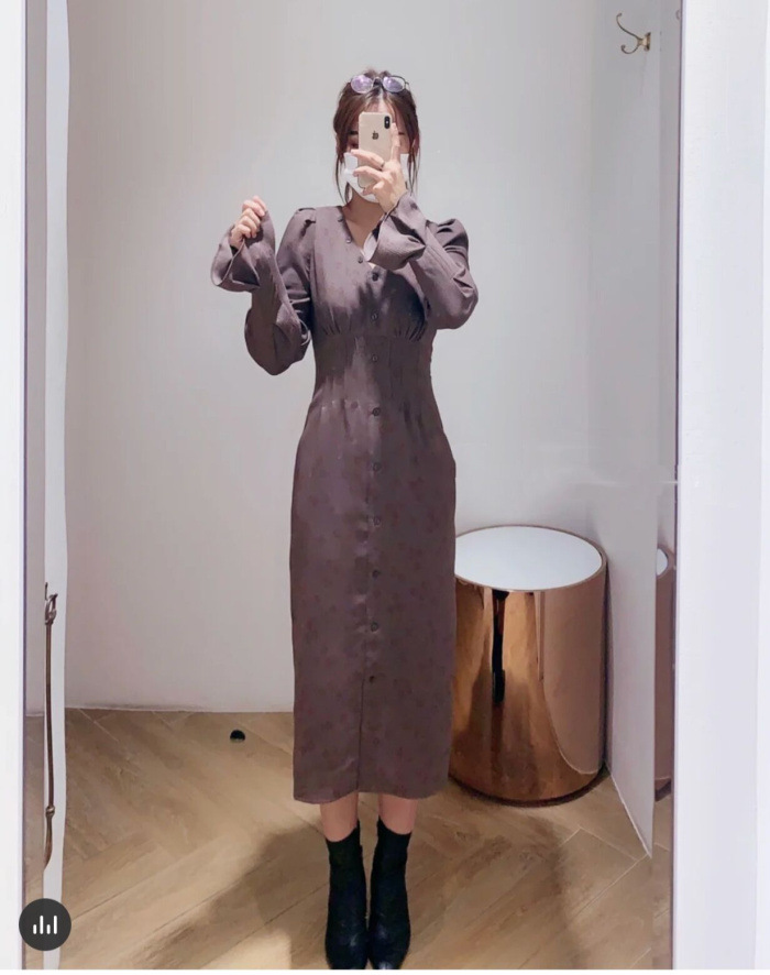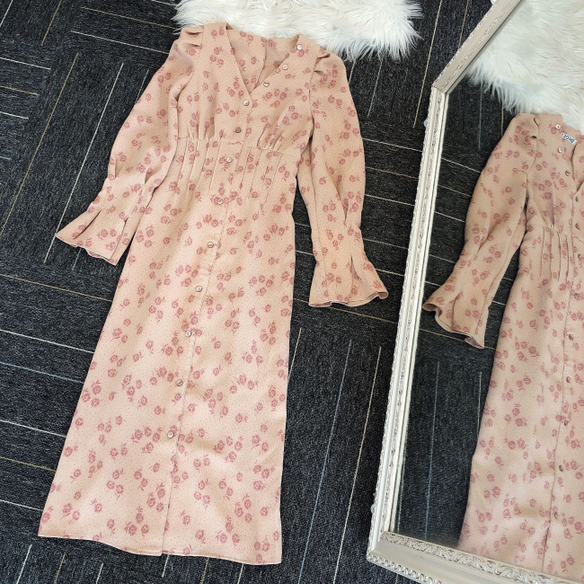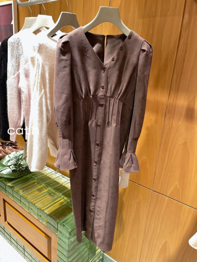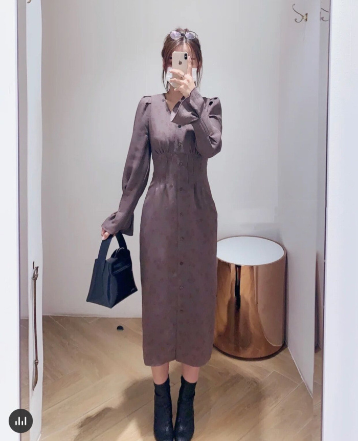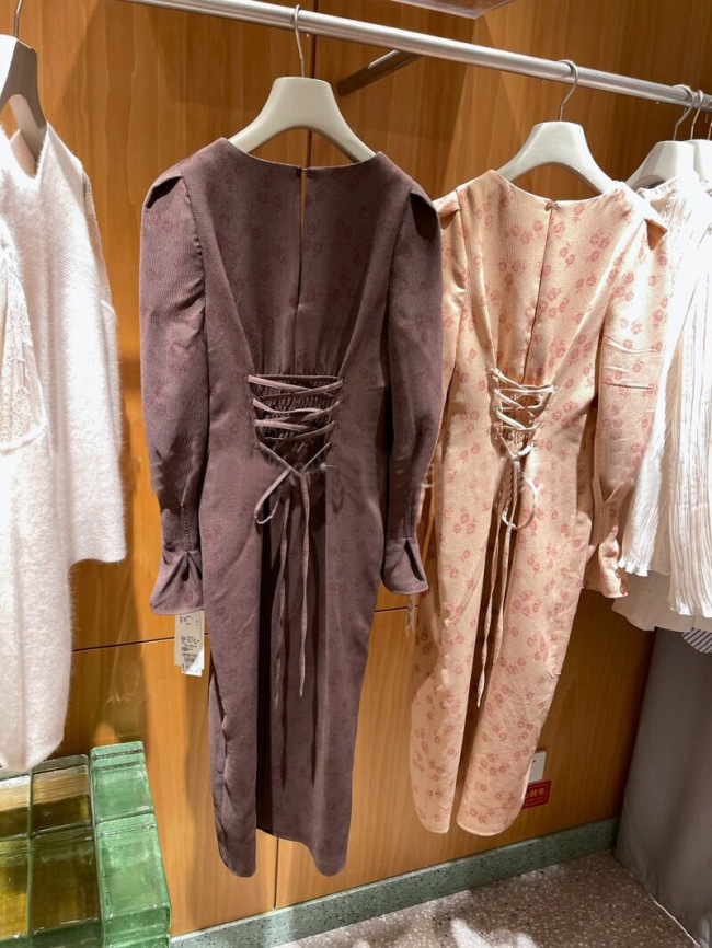 スタイルアップを叶えるプリントワンピース。メリハリのあるタイトシルエットをつくるウエストタック、バックには身幅のサイズ調整が可能のレースアップをデザインしました。配色のPNKとワントーン見えのBRWのクラシカルな2色展開です。
