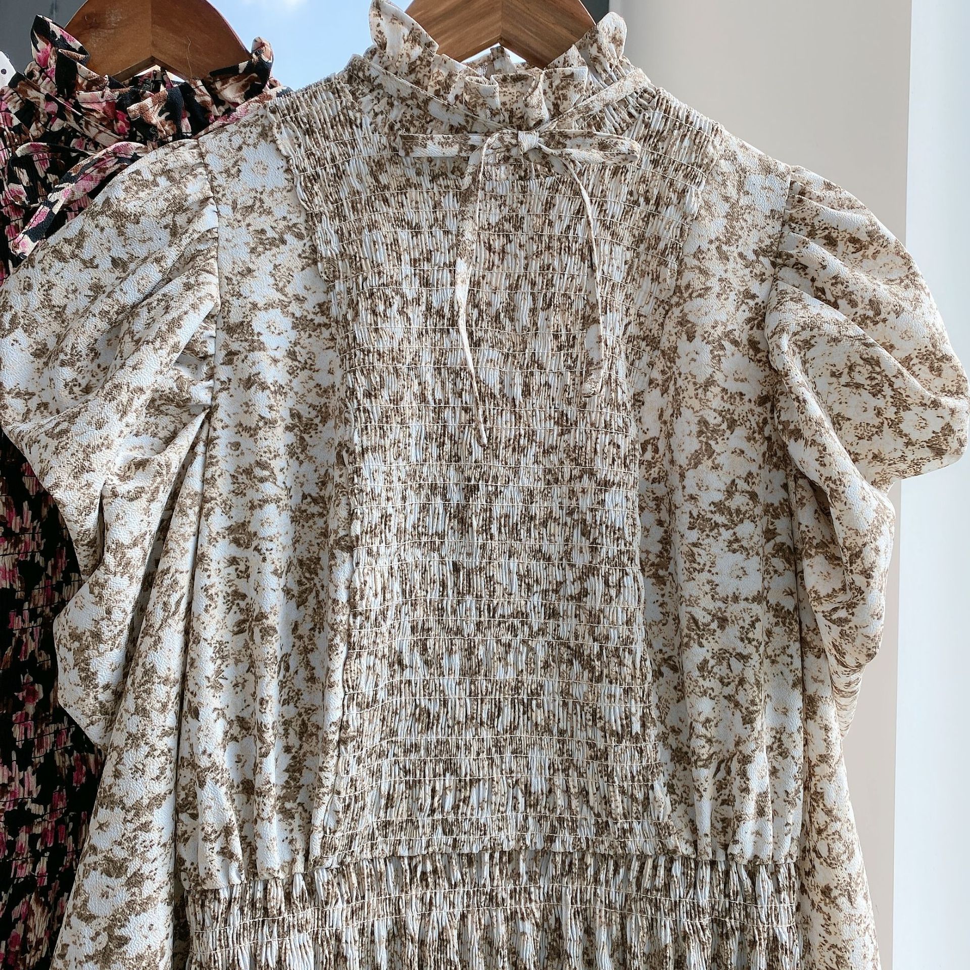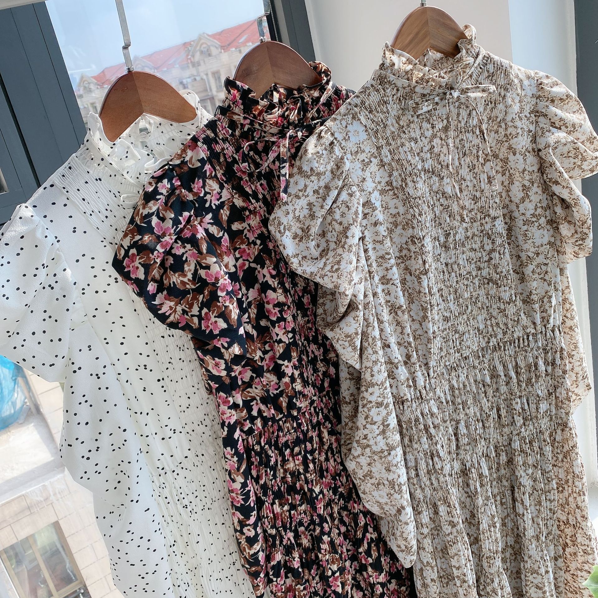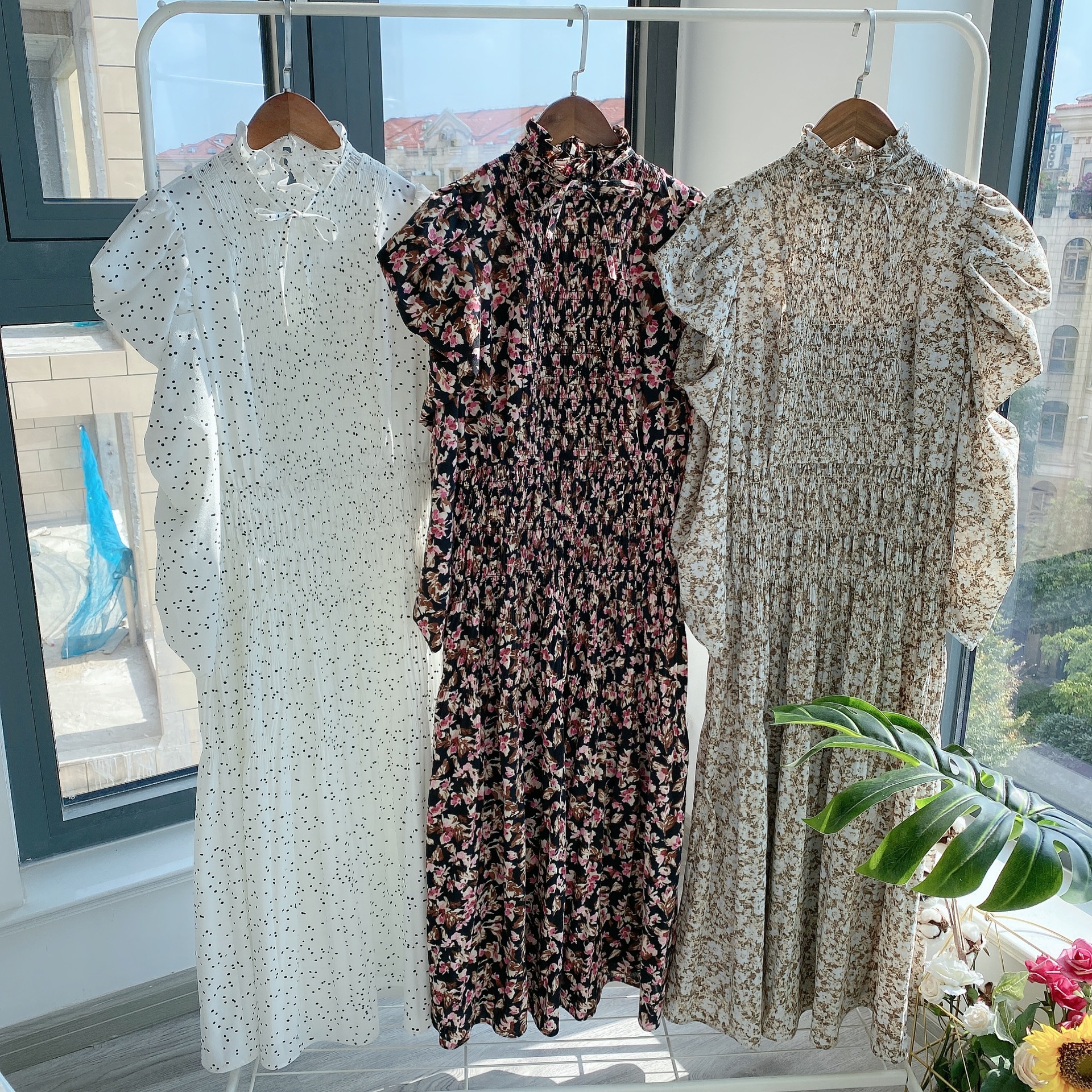 素材:ポリエステル100% サイズ表記 総丈 肩 袖丈 バスト ウエスト S 124cm 27cm 59cm 89cm 88cm M 127cm 28cm 61cm 93cm 92cm