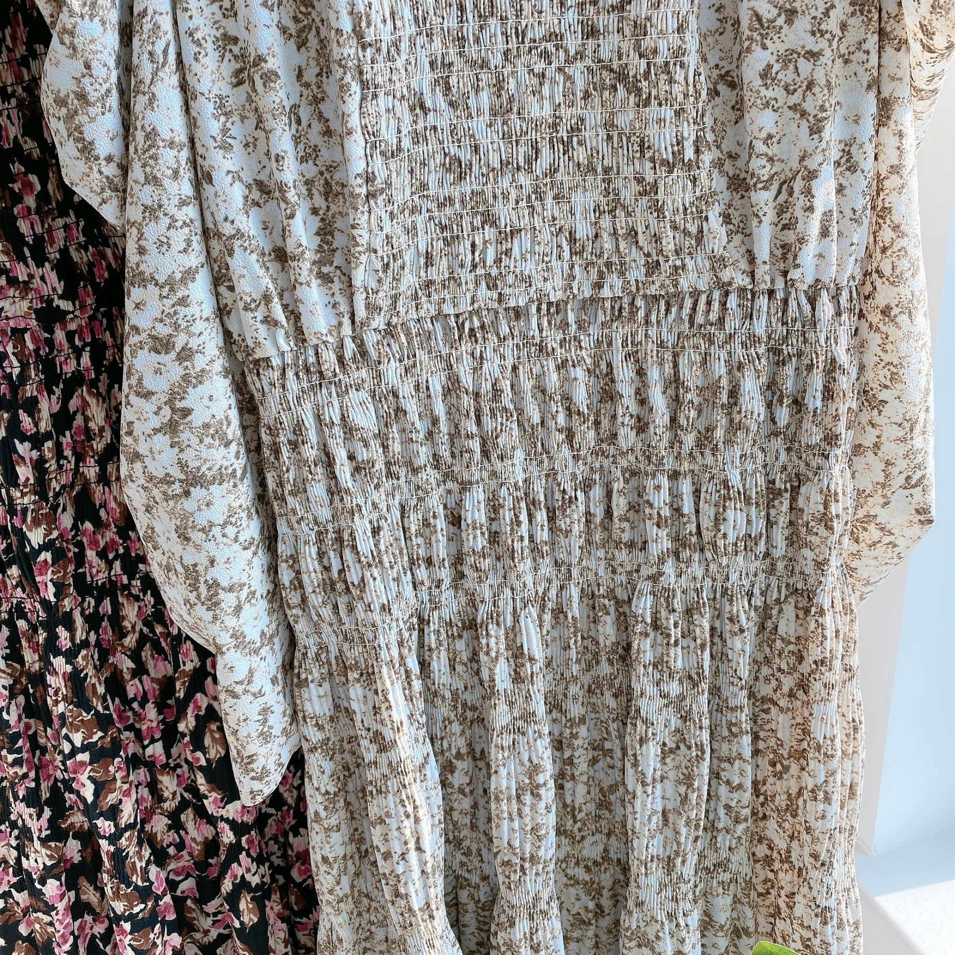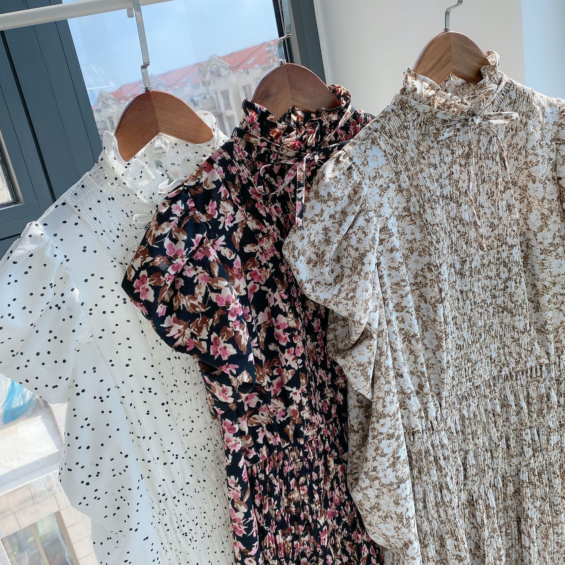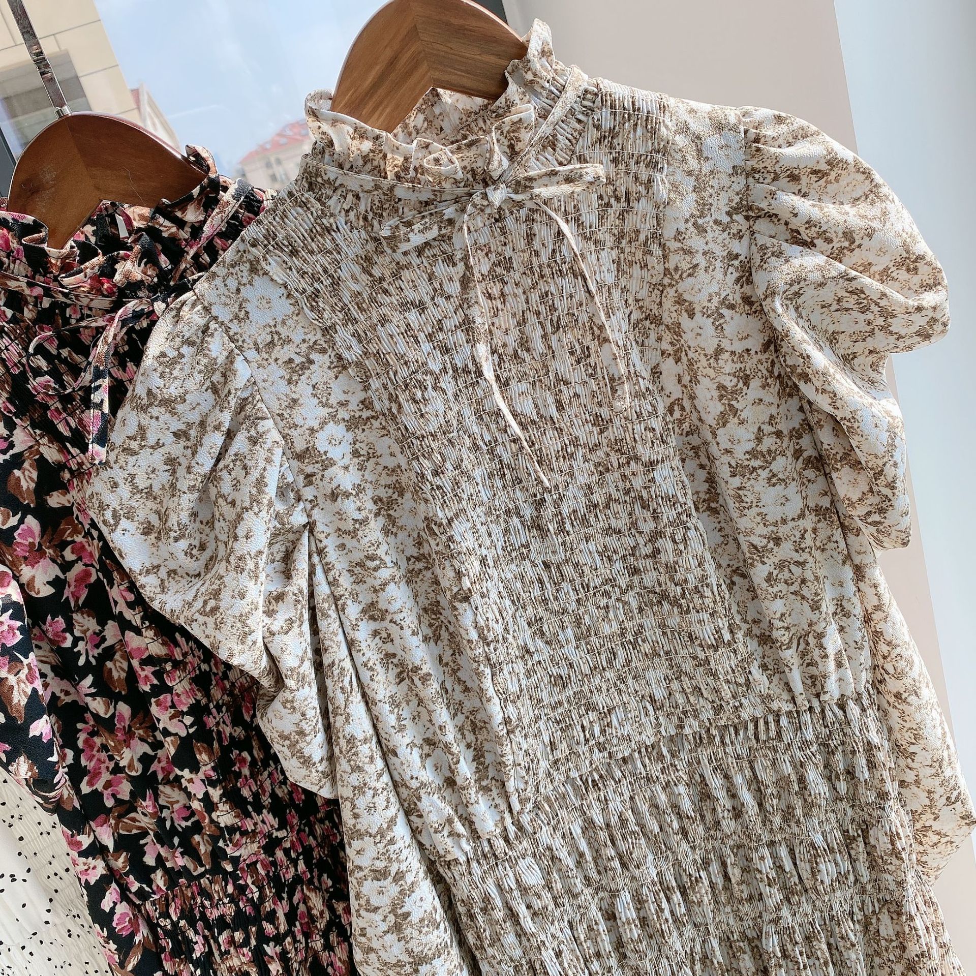 素材:ポリエステル100% サイズ表記 総丈 肩 袖丈 バスト ウエスト S 124cm 27cm 59cm 89cm 88cm M 127cm 28cm 61cm 93cm 92cm