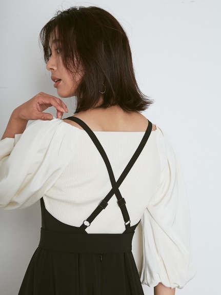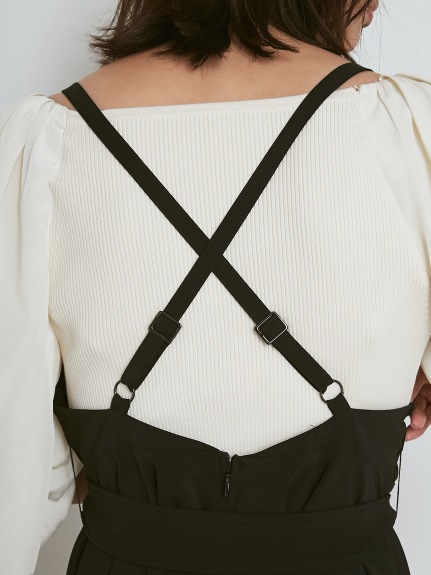 背中でクロスするストラップが、バックスタイルも素敵に演出。
