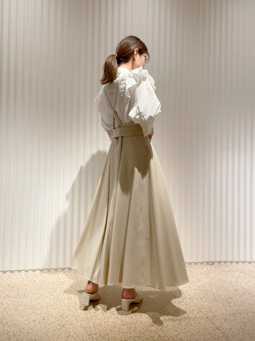 ボリュームスリーブブラウスなどを合わせると、トレンド感のあるスタイリングが完成します。