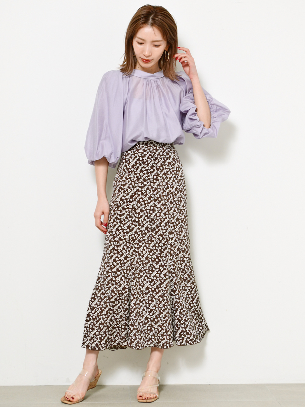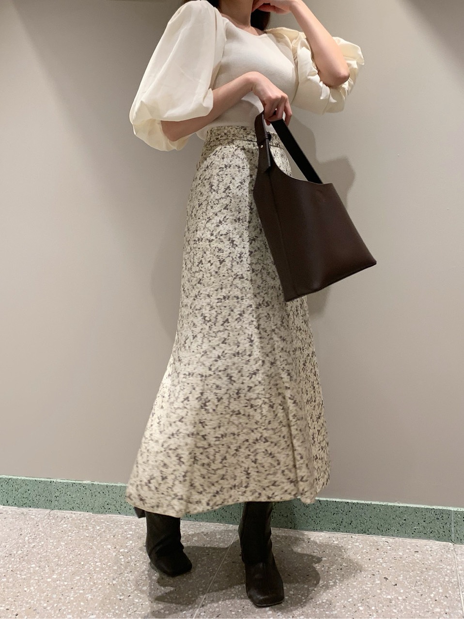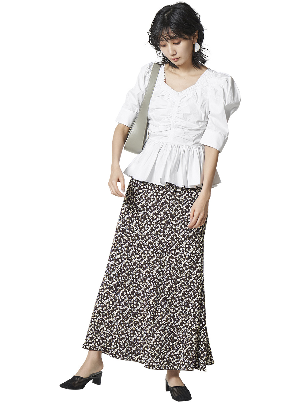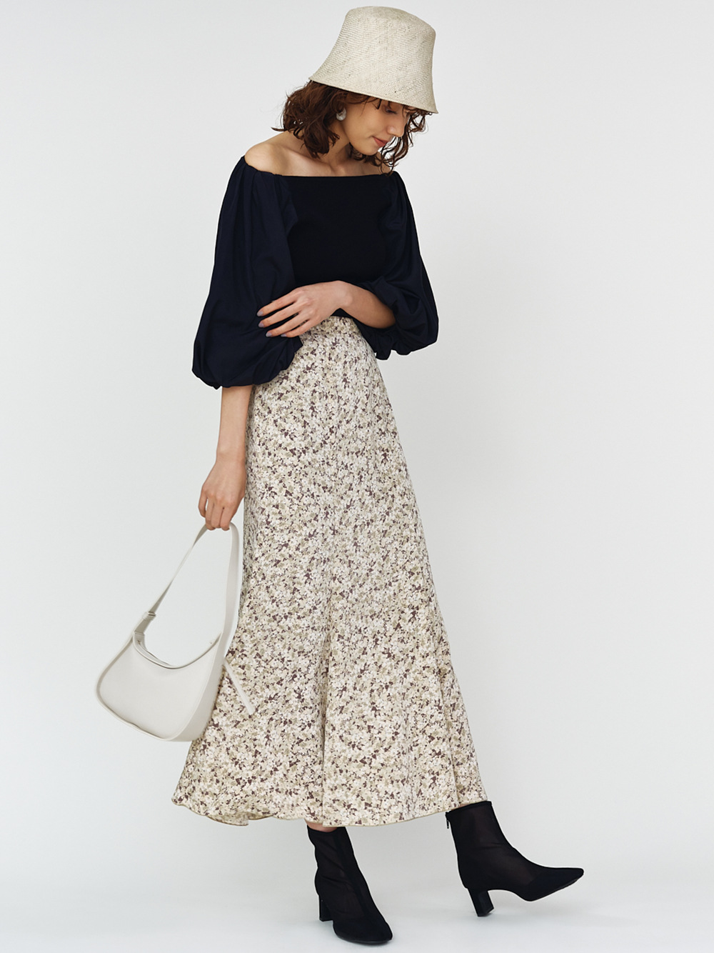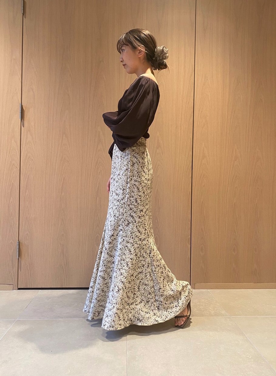 シックなバリエーションプリントが上品に映える、SNIDEL定番のプリントスカートです。今シーズンは、裾に広がりを持たせたマーメイドライクなシルエットを採用。