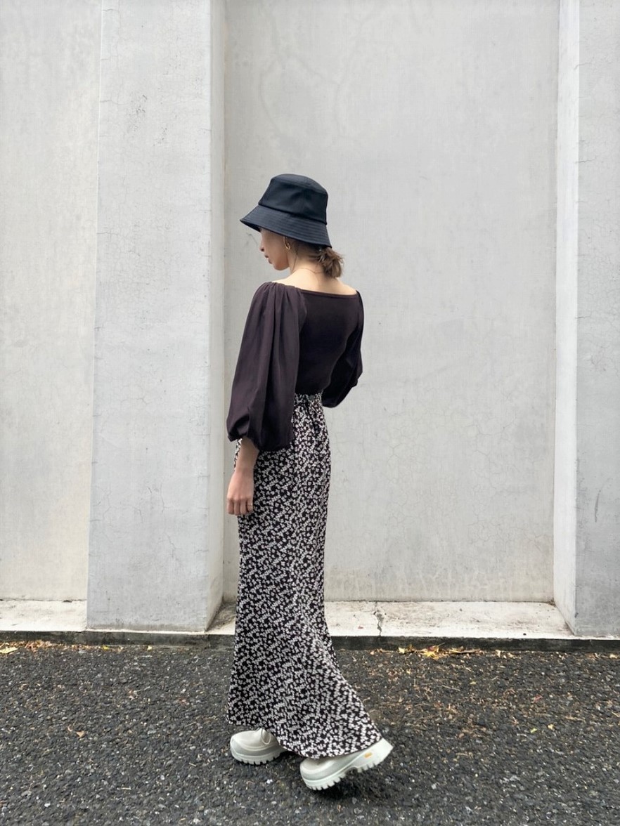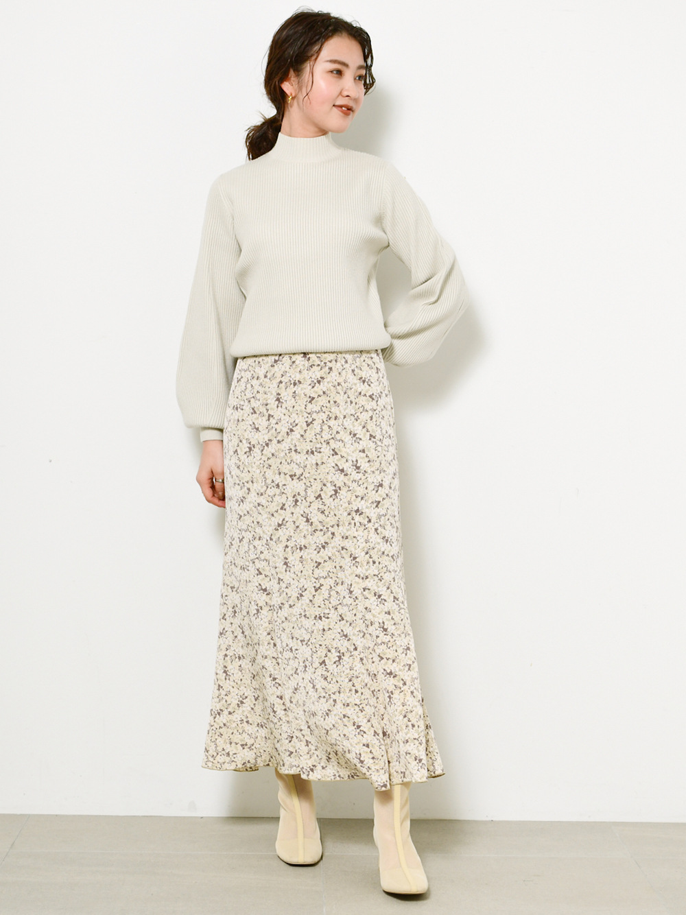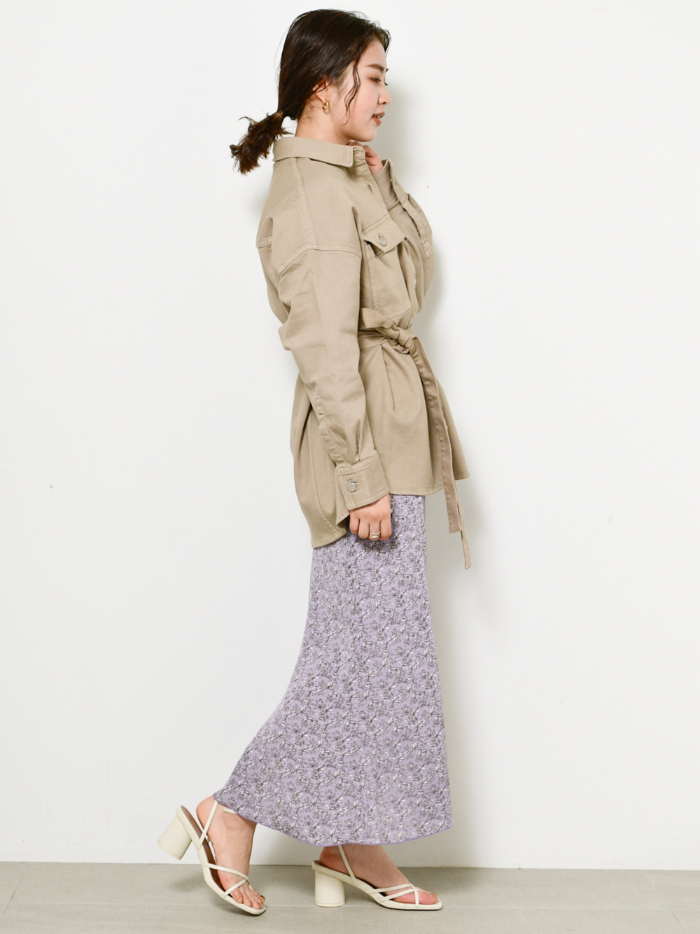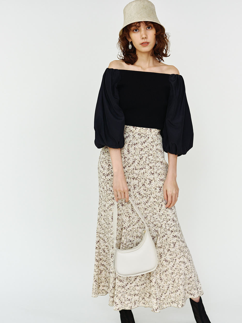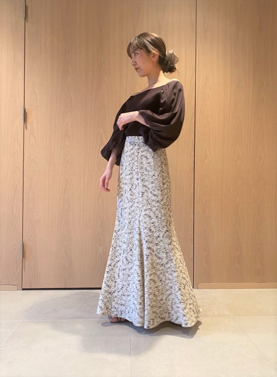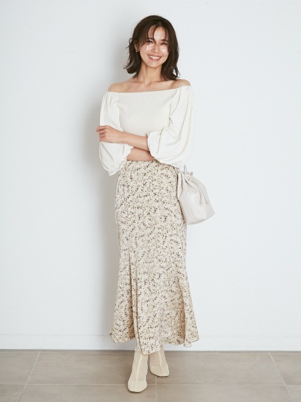 シックなバリエーションプリントが上品に映える、SNIDEL定番のプリントスカートです。今シーズンは、裾に広がりを持たせたマーメイドライクなシルエットを採用。