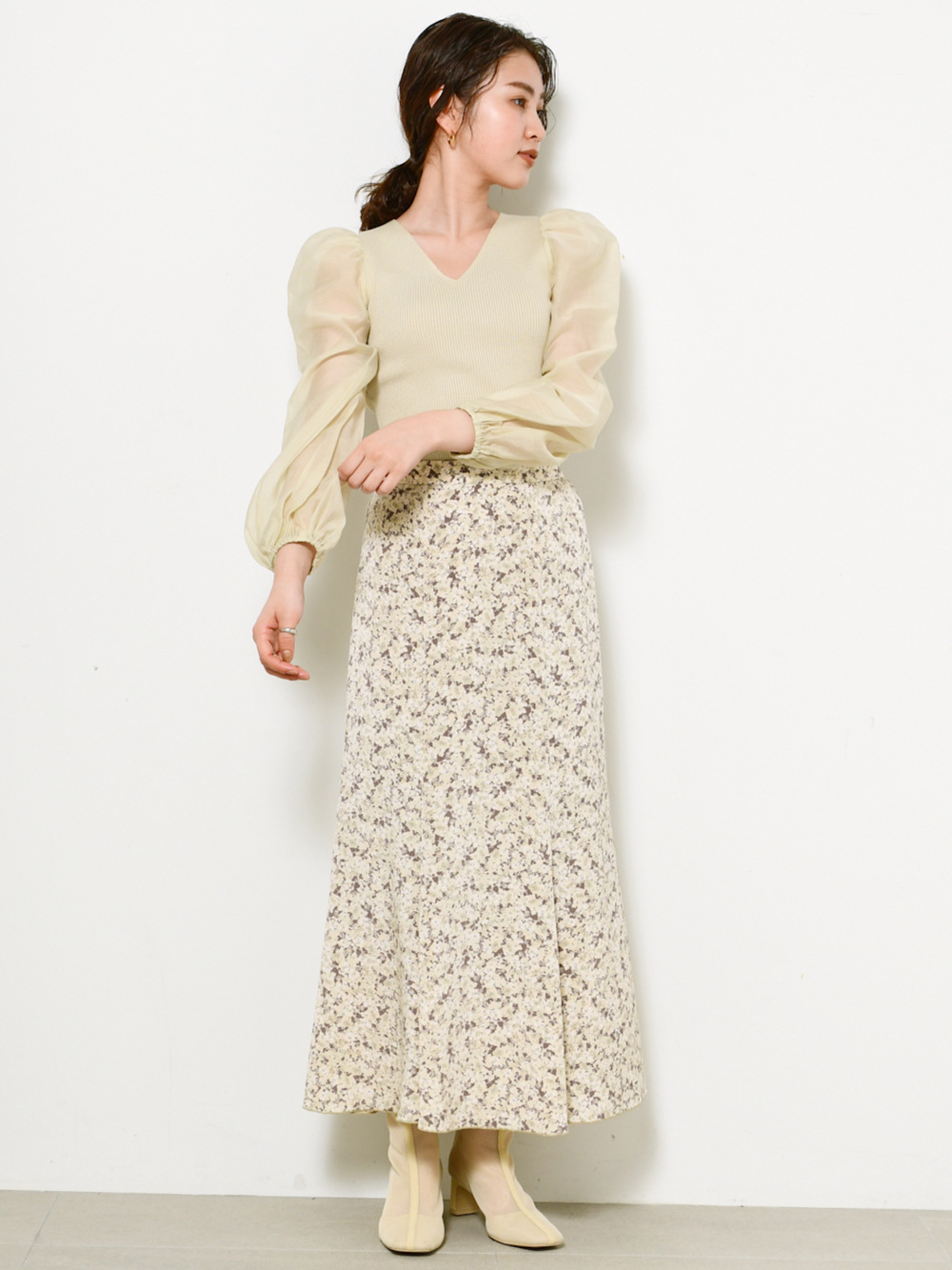 パススリーブのニットなどと合わせた、トレンド感のあるスタイリングがオススメです。