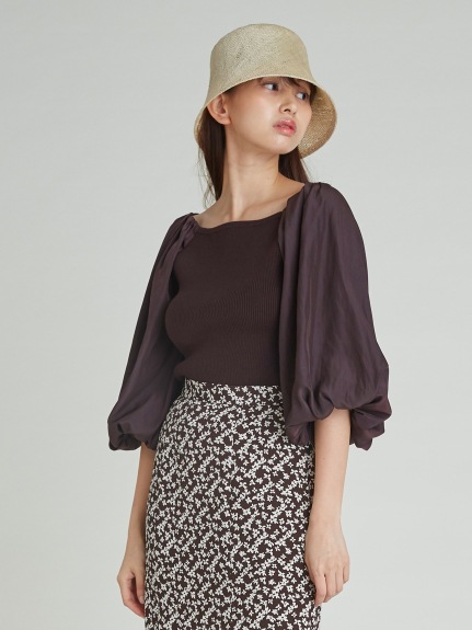 着映えを叶えるバルーンスリーブニット。エアリーな素材とボリュームたっぷりの袖が、遠くからでも目を引きます。 袖デザインがスイートな分、フィット感のあるリブニットとオフショルデザインで、鎖骨と首周りを美しく華奢に見せ、女性らしさを引き立たせます。 サイズ表記 総丈 裄丈 袖口(ゴムあり) バスト F 45cm 56cm 11cm 68cm 素材 本体:ナイロン43%、アクリル25%、綿25%、ポリウレタン7%/袖部分:ポリエステル100%