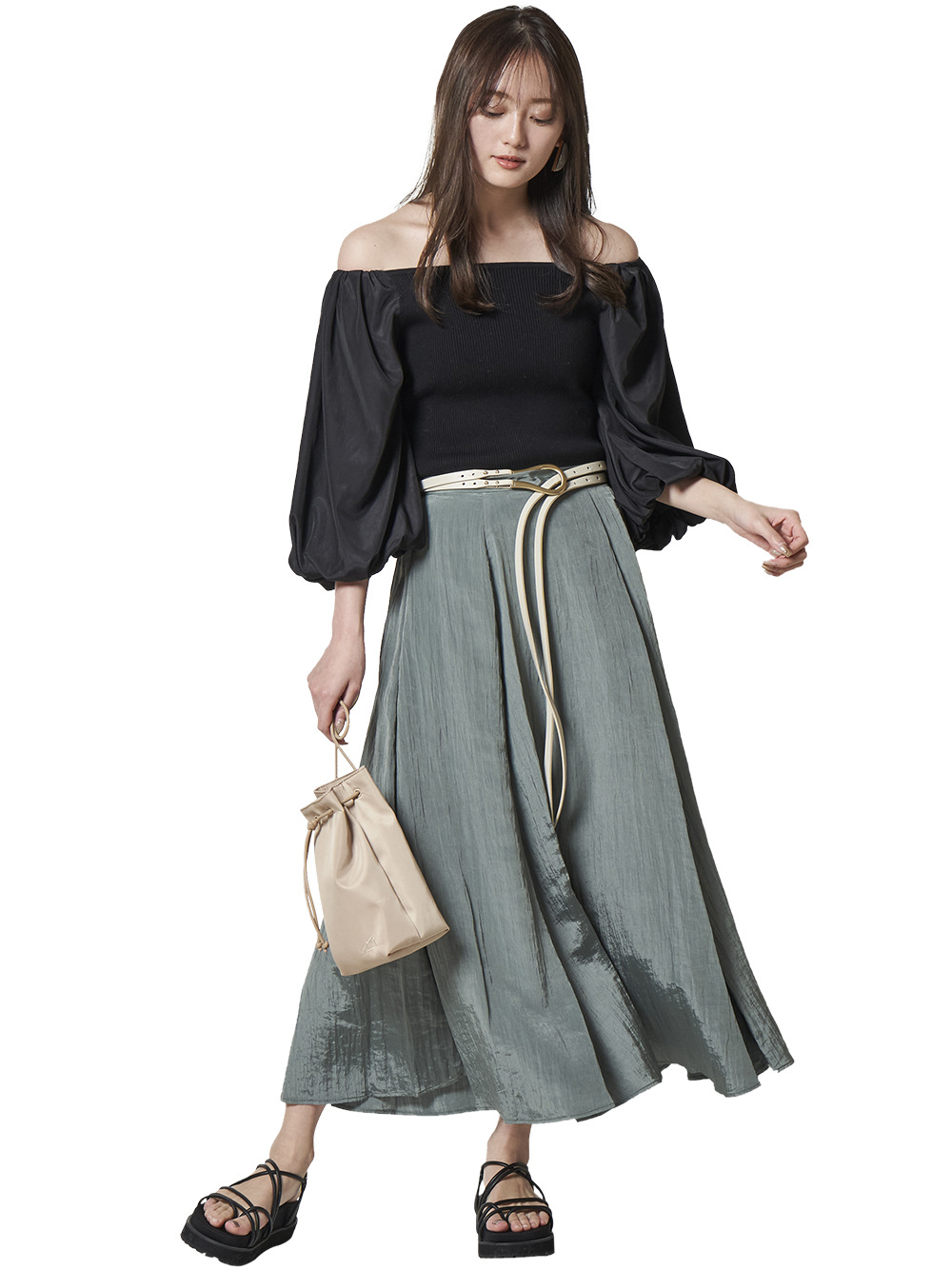 ボリュームギャザーフリルオフショルブラウス