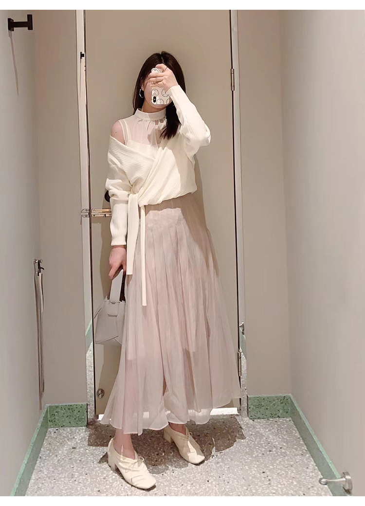 パフスリーブオフショルニットプルオーバー
