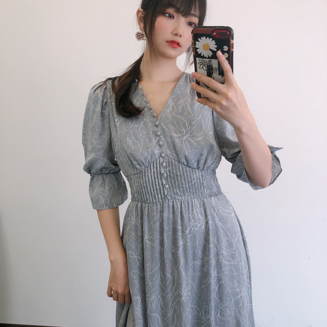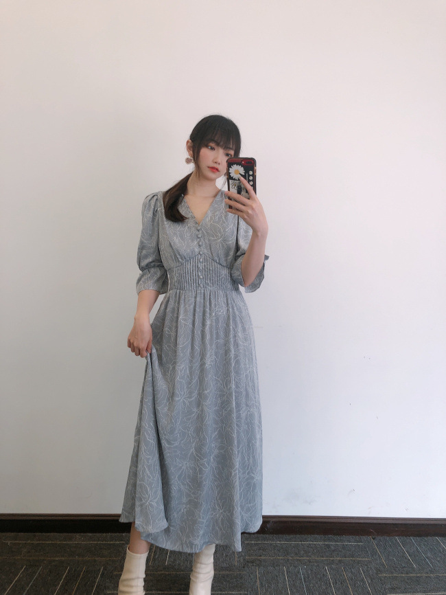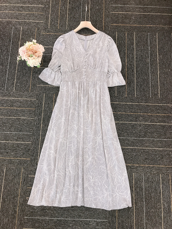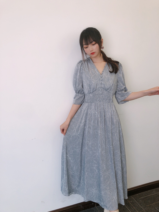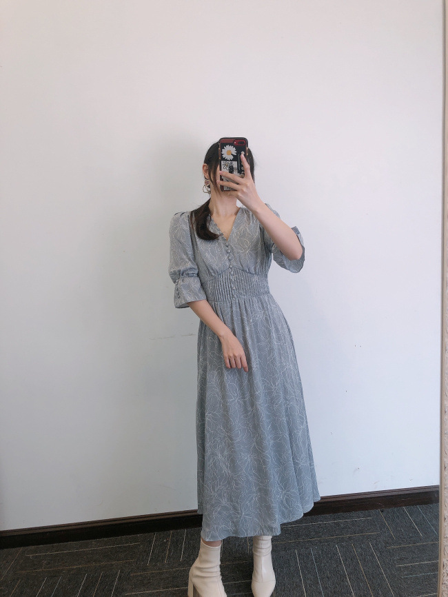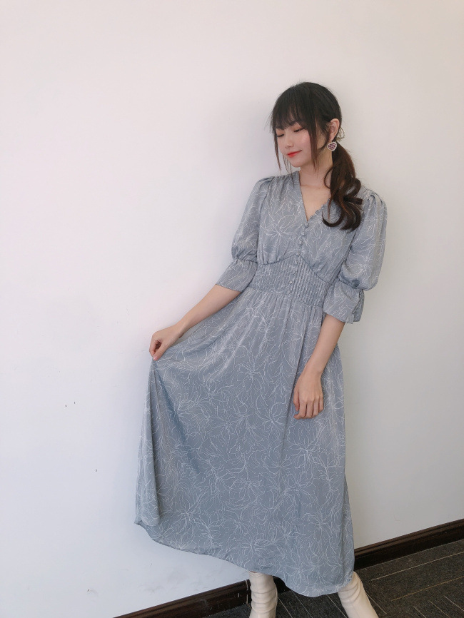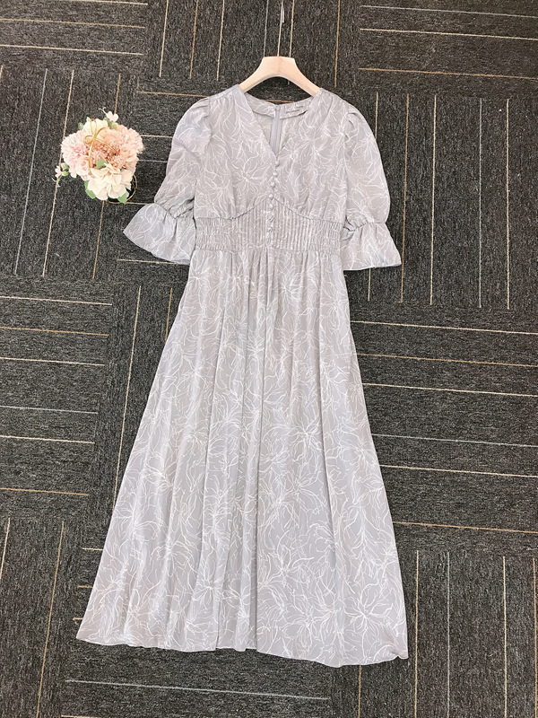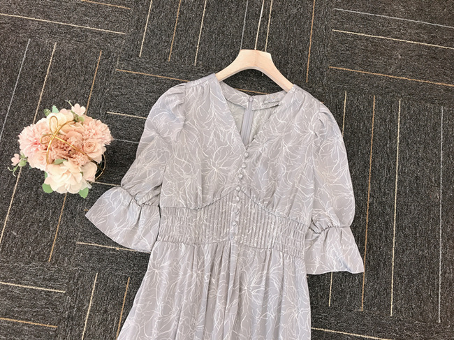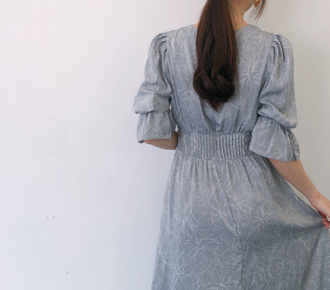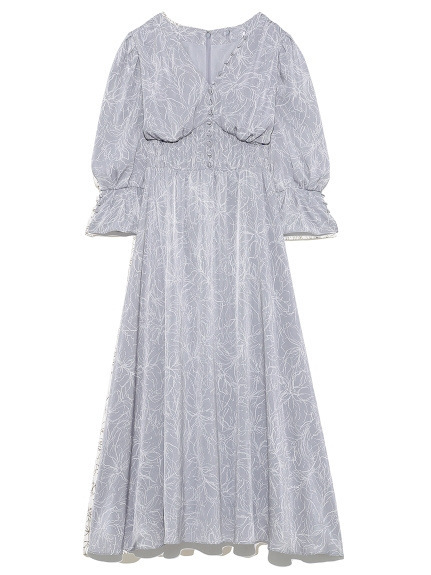 ラインフラワーウエストギャザーワンピース