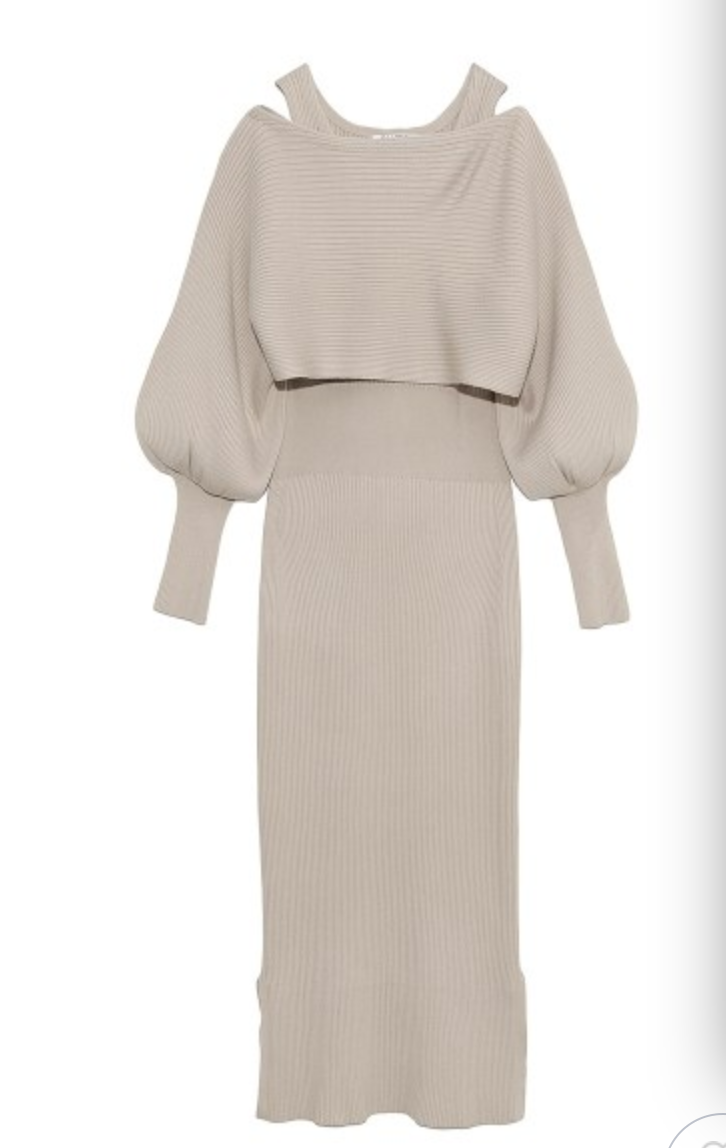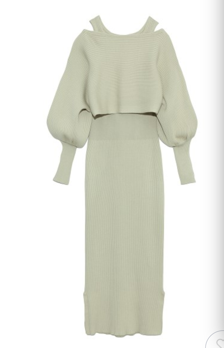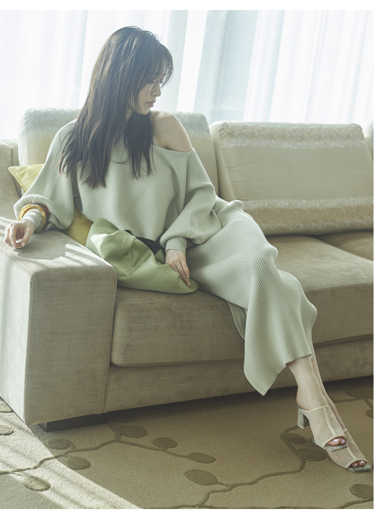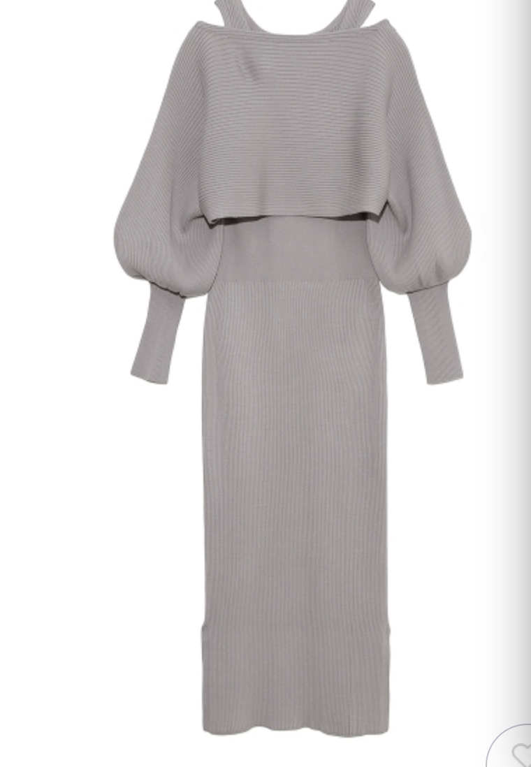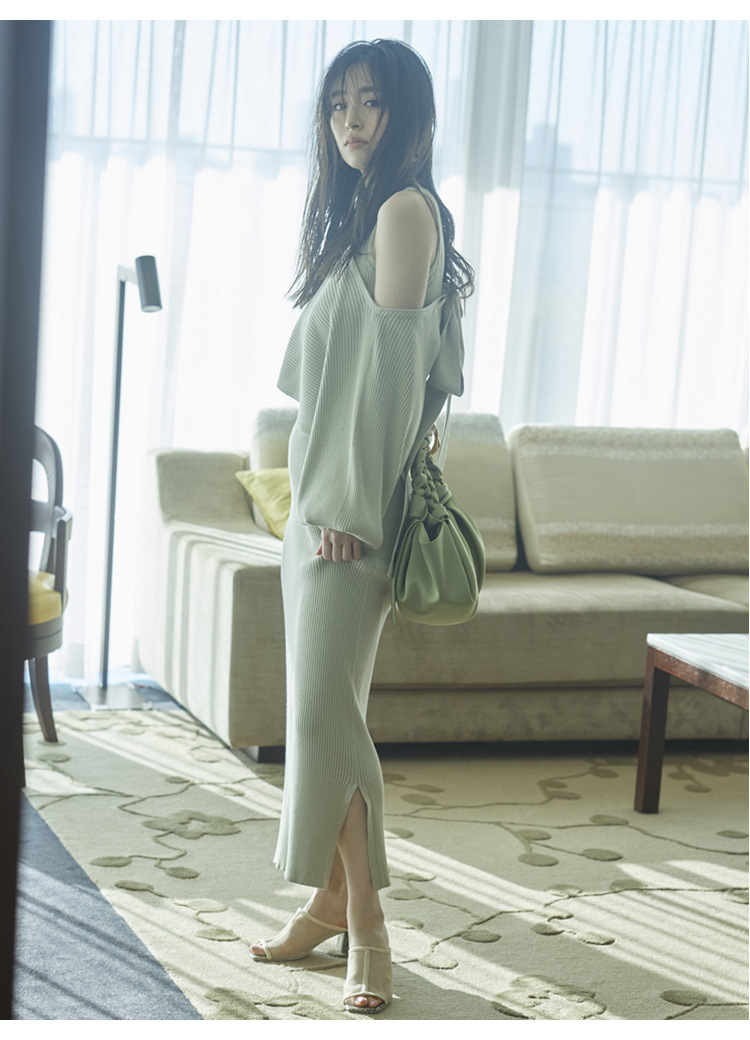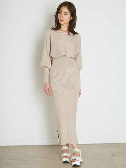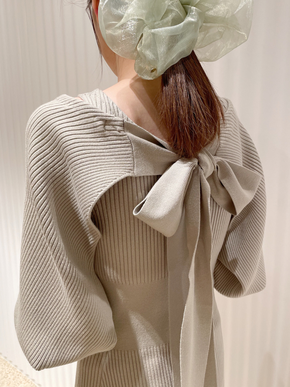 トレンドのレイヤードデザインをニットワンピに落とし込みました。スタイルアップ見えするウエスト切り替えのタンクワンピに、同素材で仕立てたニットボレロをプラス。