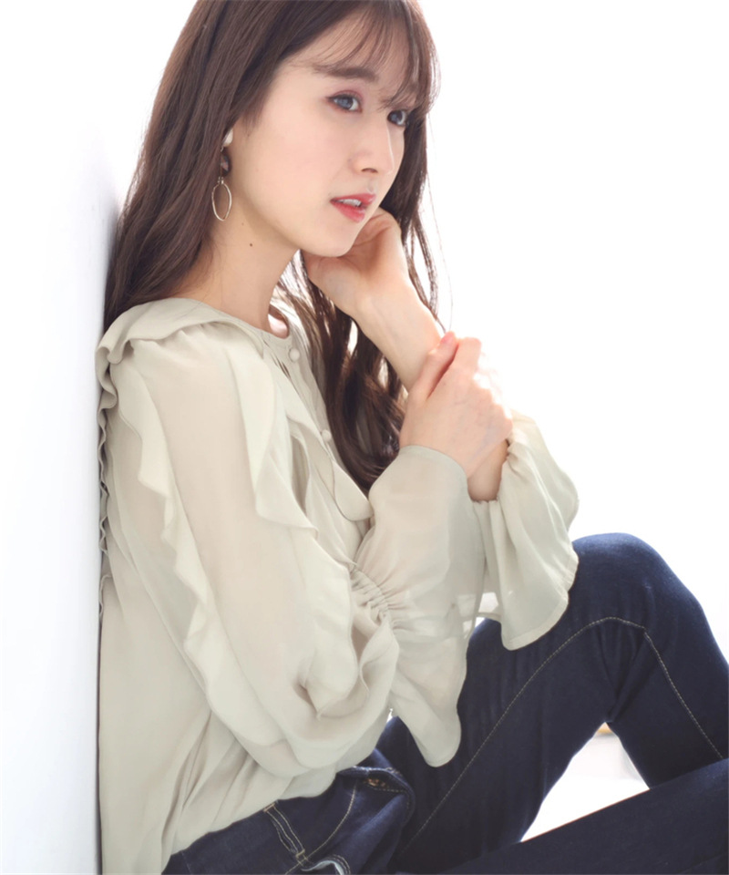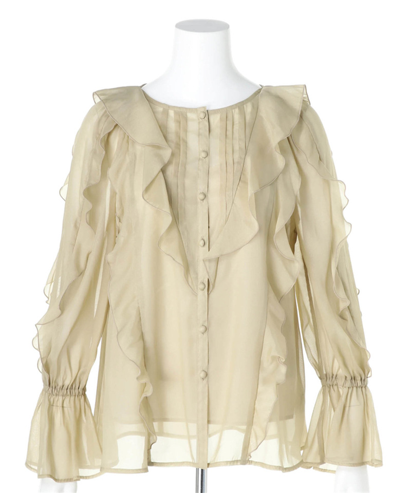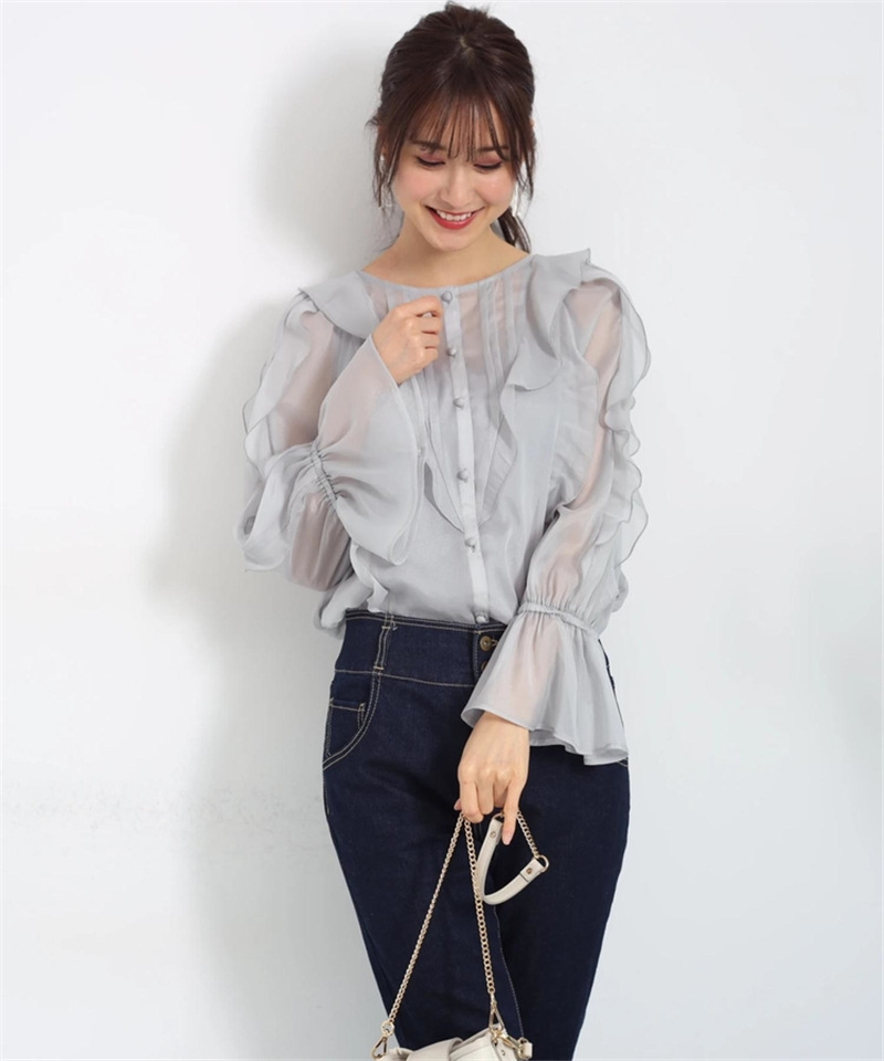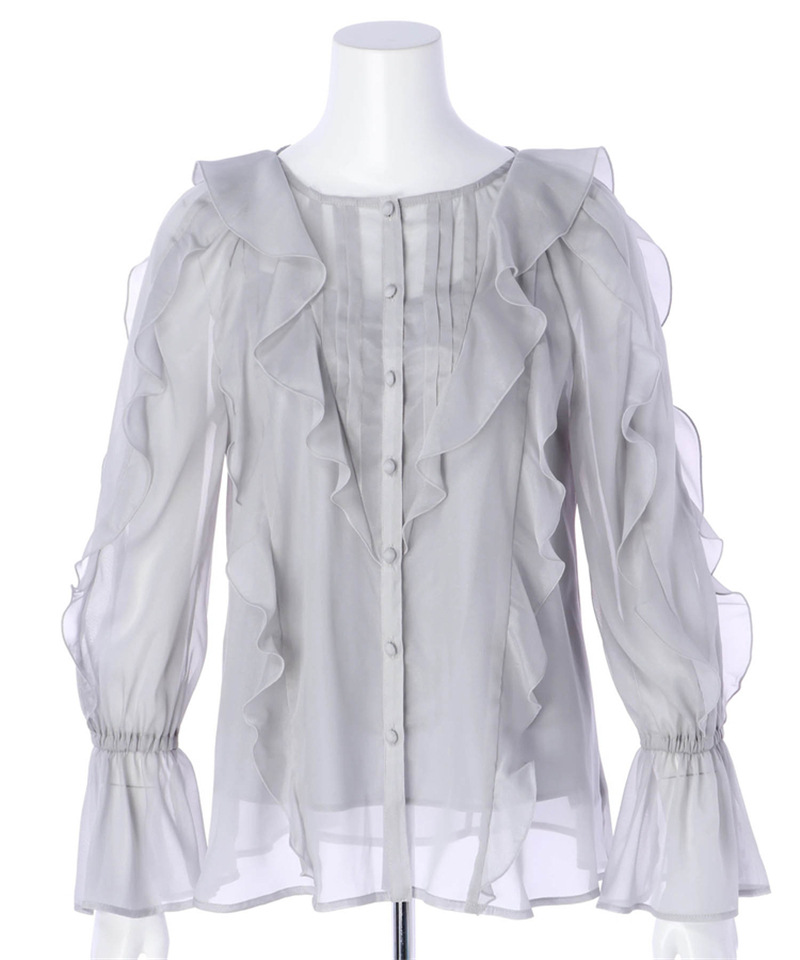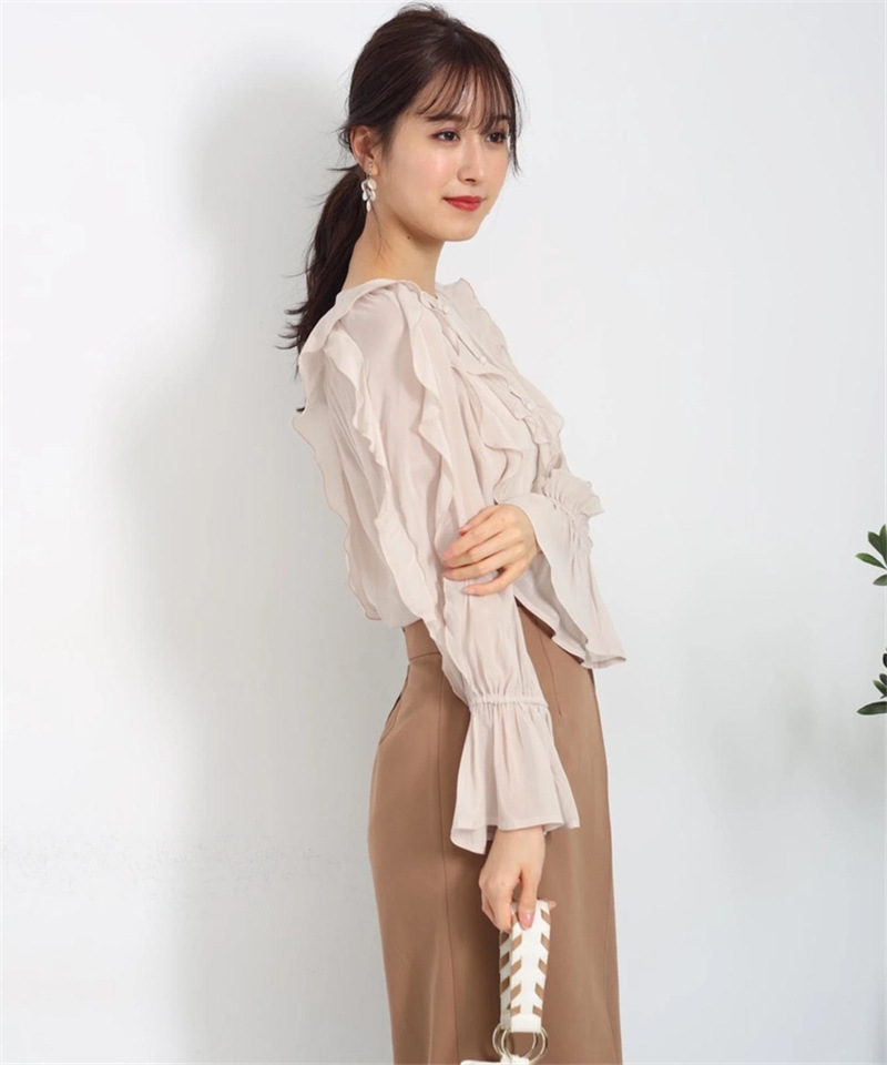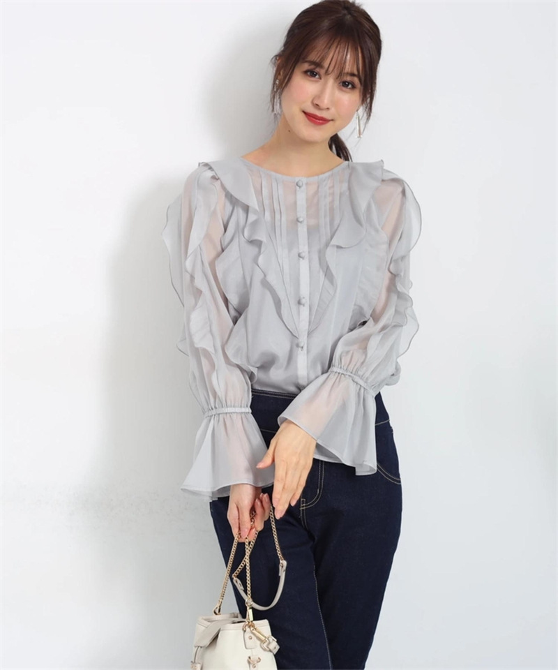 愛されデザインのフリルブラウスは、華やかに着映えするルックスで女子度もアップ! 大人の抜け感を添えるシアーなルックスで軽やかなバランスを演出。フレアな袖口デザインで、何気ない所作も美しく魅せてくれます。