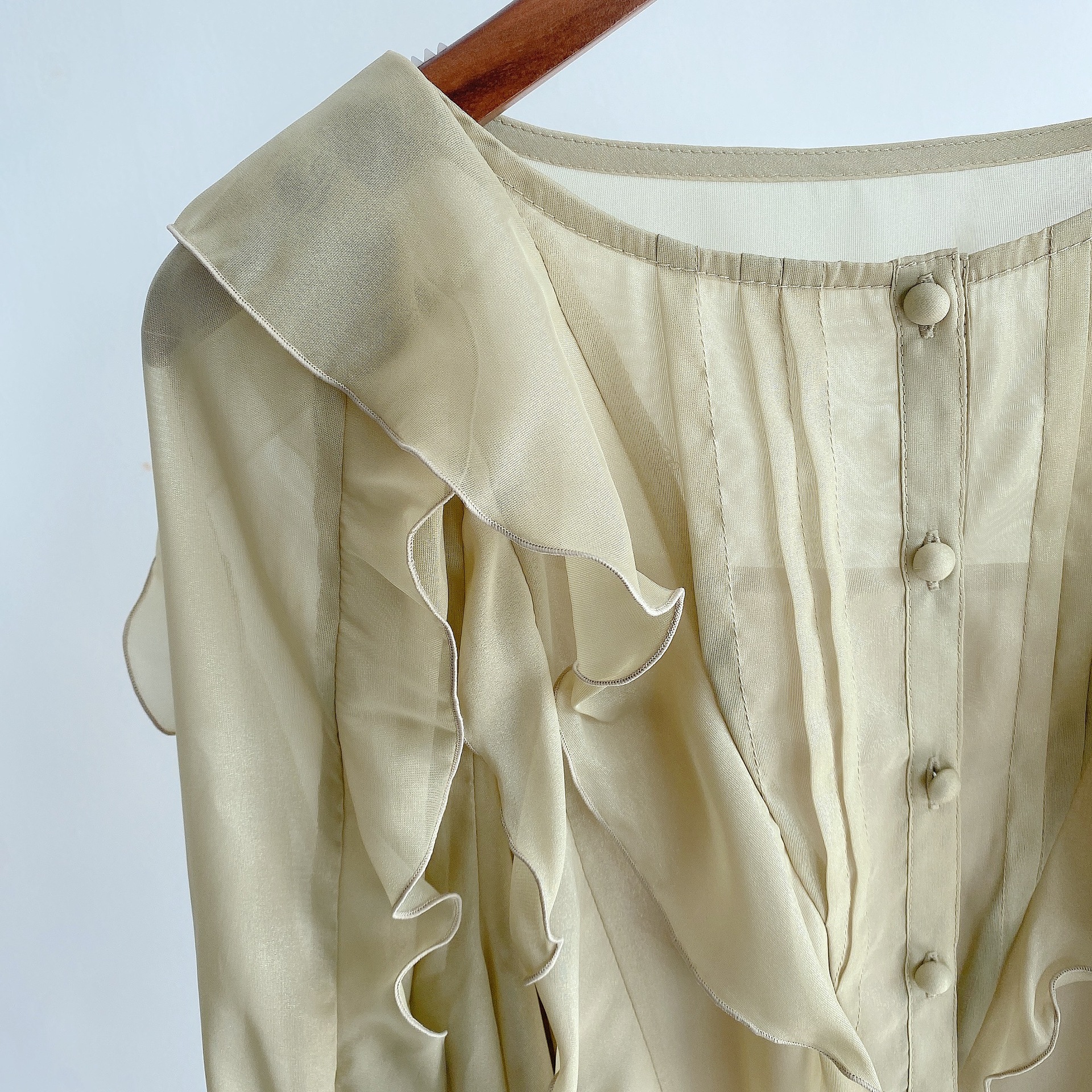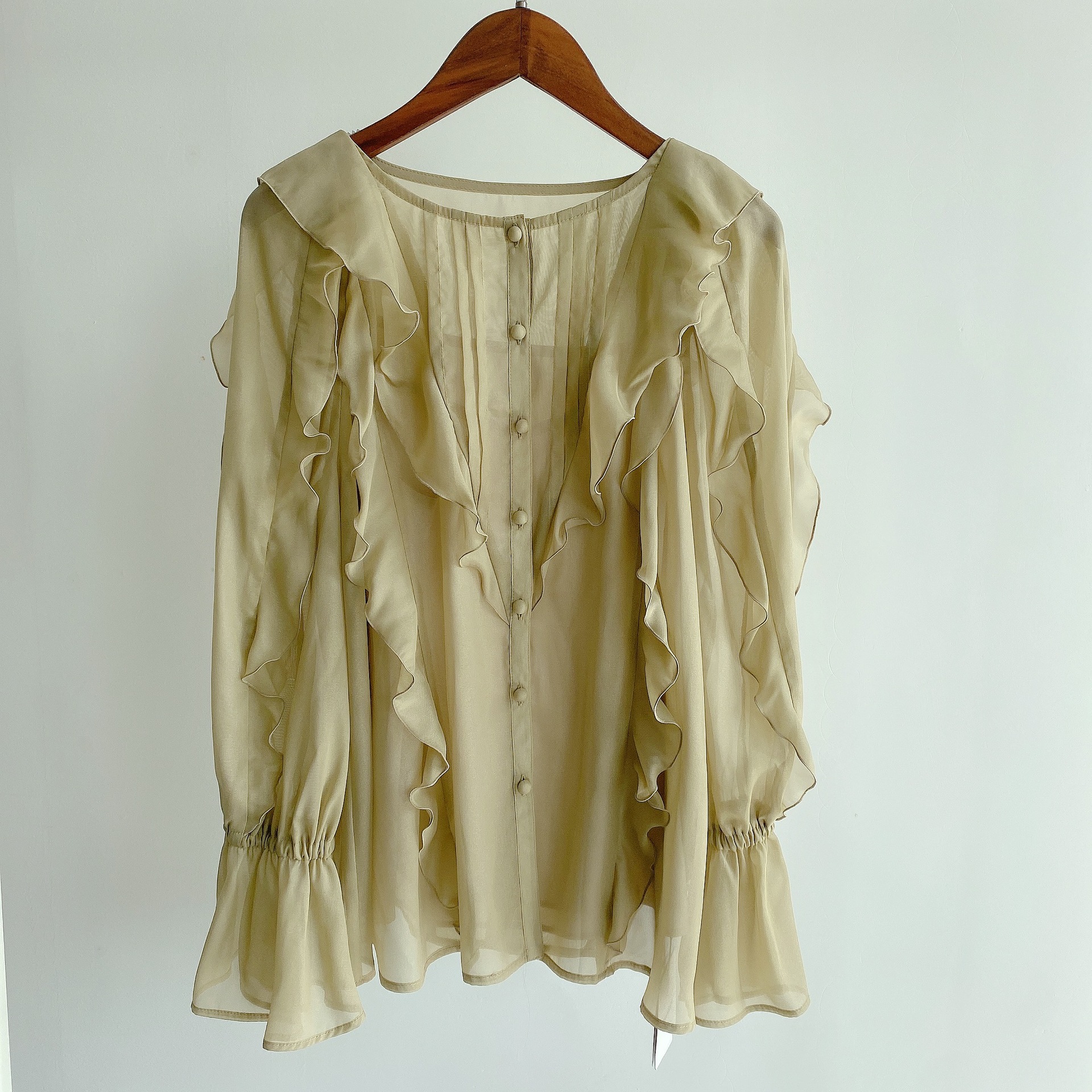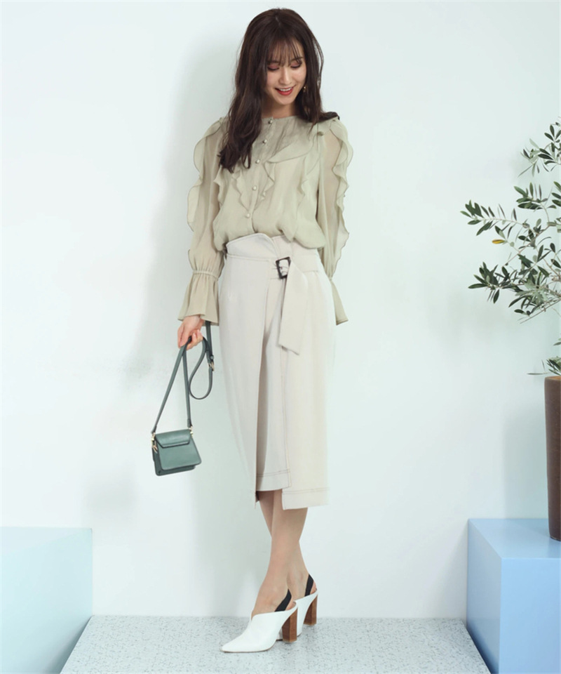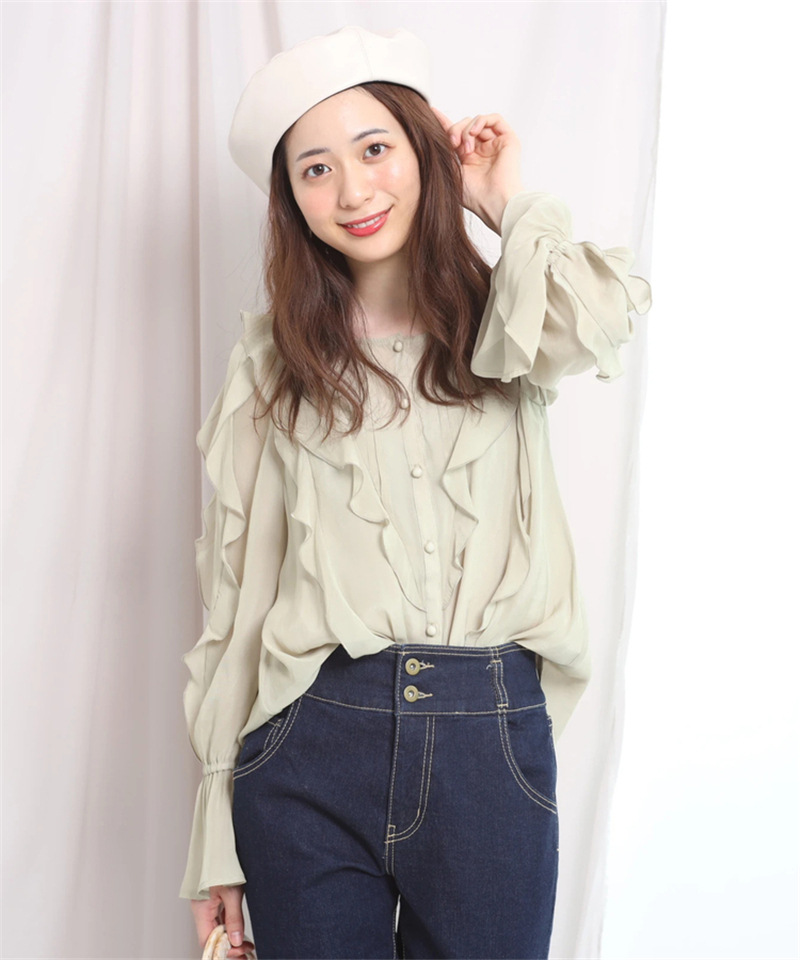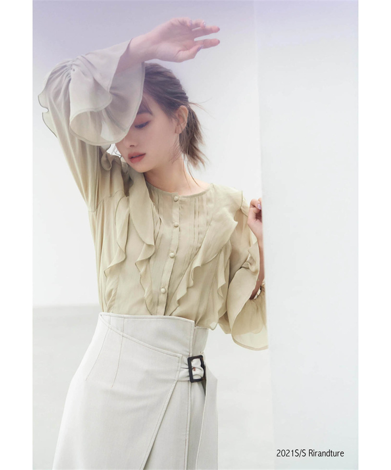 愛されデザインのフリルブラウスは、華やかに着映えするルックスで女子度もアップ! 大人の抜け感を添えるシアーなルックスで軽やかなバランスを演出。フレアな袖口デザインで、何気ない所作も美しく魅せてくれます。