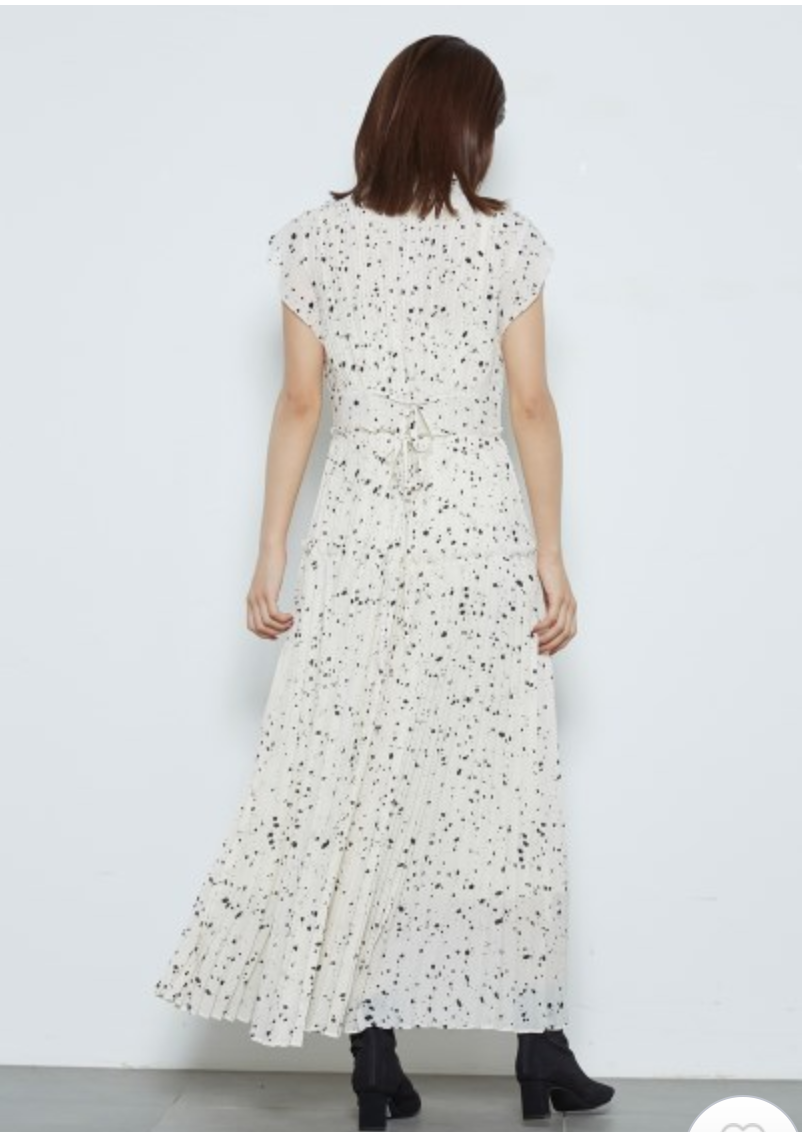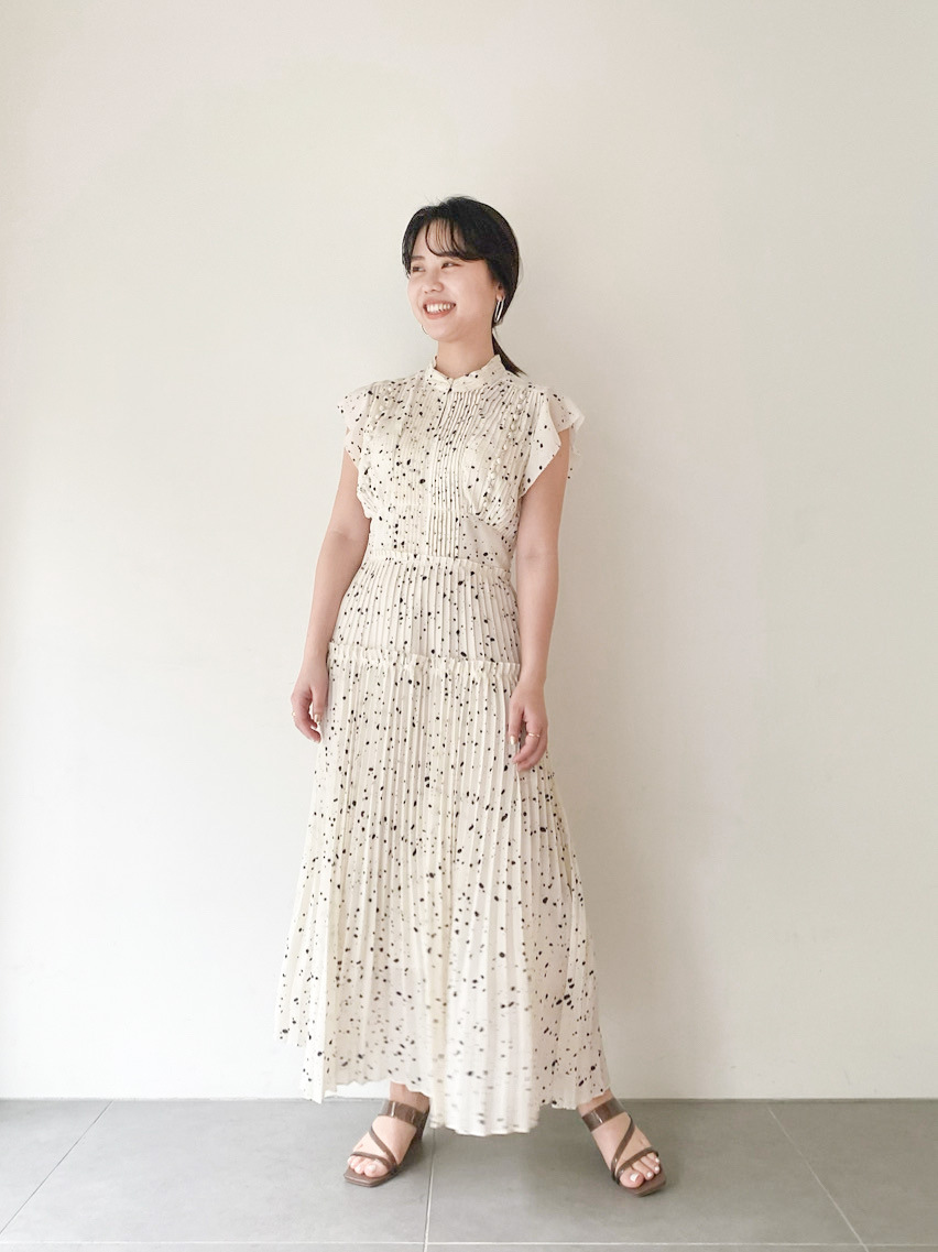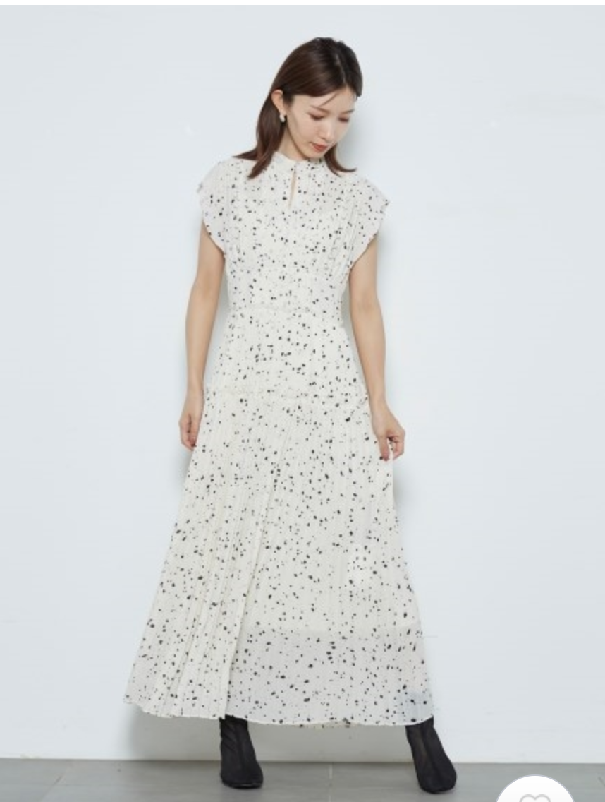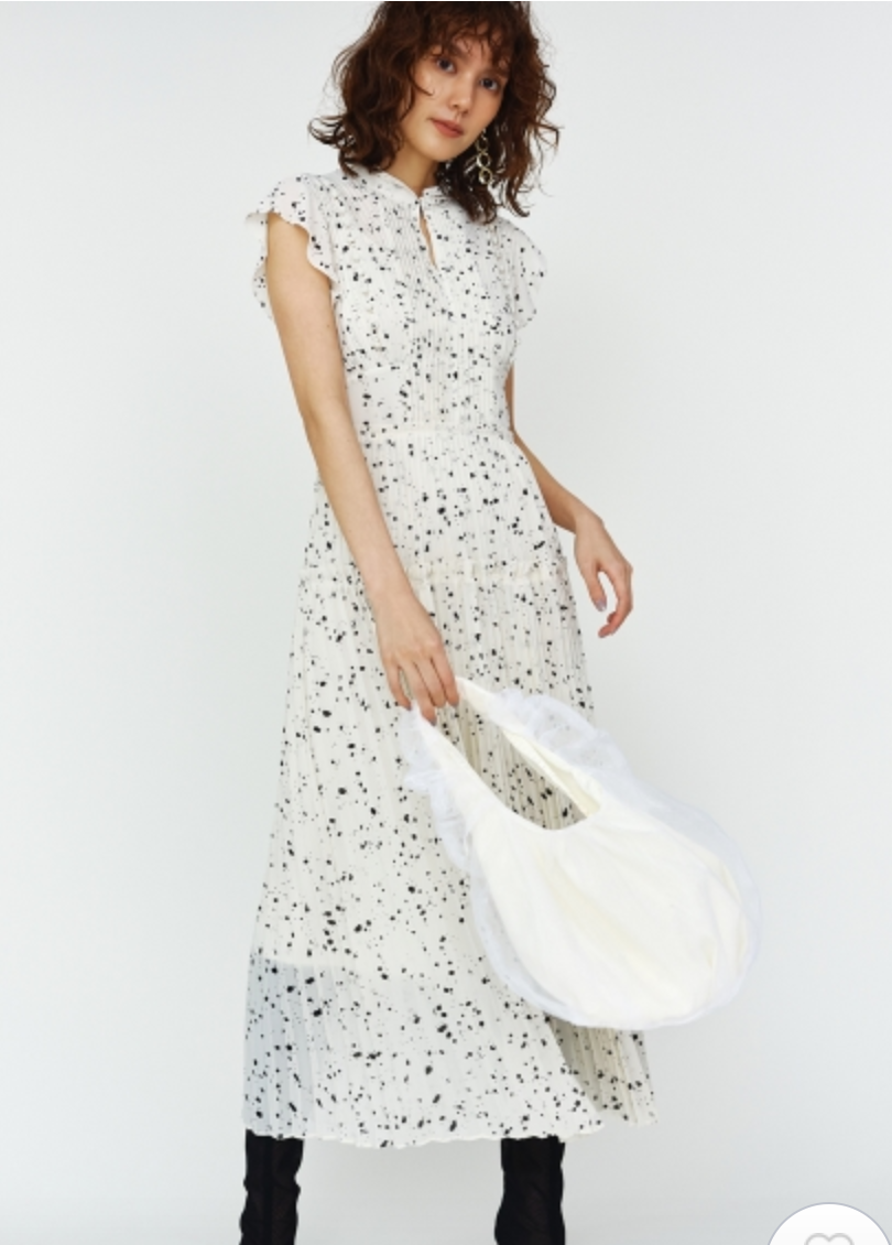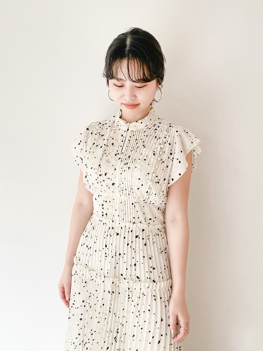 【新鮮なフェミニティを醸すストーン柄プリーツワンピース】